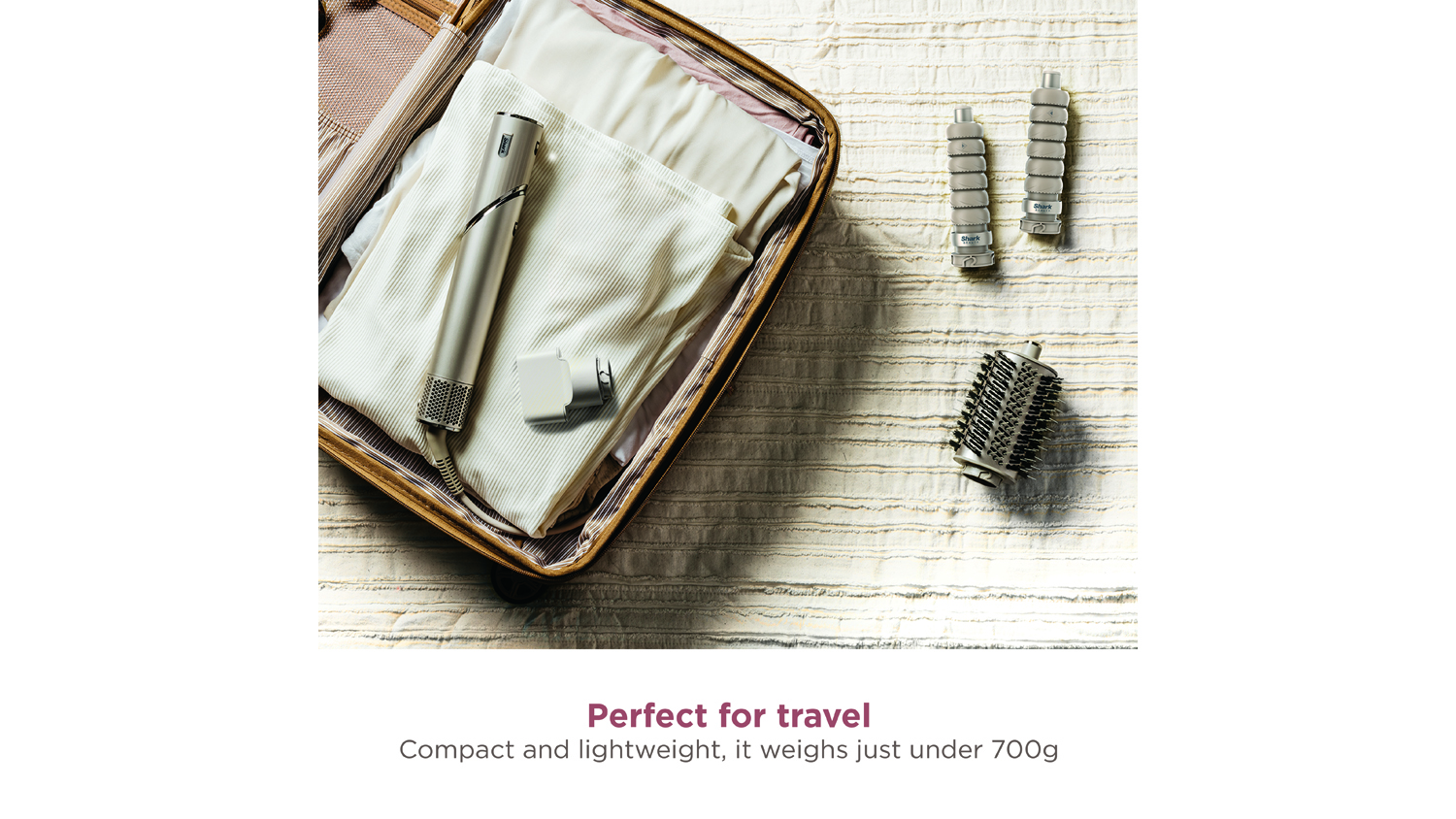 | Attachments - List | Styling Concentrator, Oval Brush, Autowrap curlers, Soft storage bag |