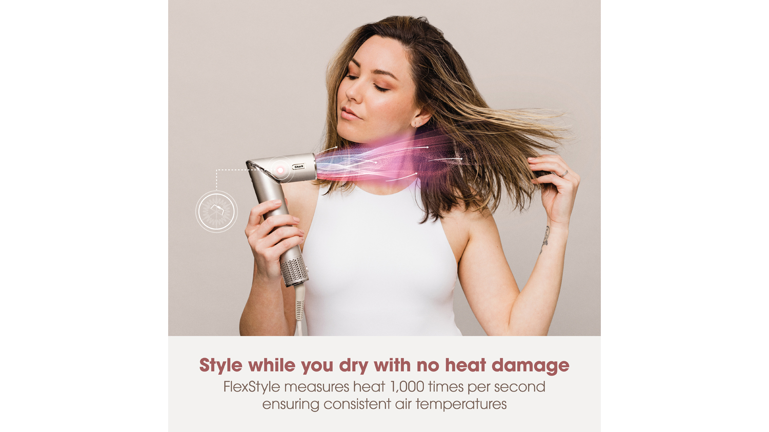 Get salon-worthy results at home with the Shark FlexStyle Air Styling & Drying System! Crafted for all hair types, this all-in-one tool easily dries, curls, smooths, and boosts hair volume. It features four temperature settings (low, medium, high, and cool shot) and three airflow choices, so you’re always in control. Plus, the chic silver colour brings a stylish flair to any beauty setup.
