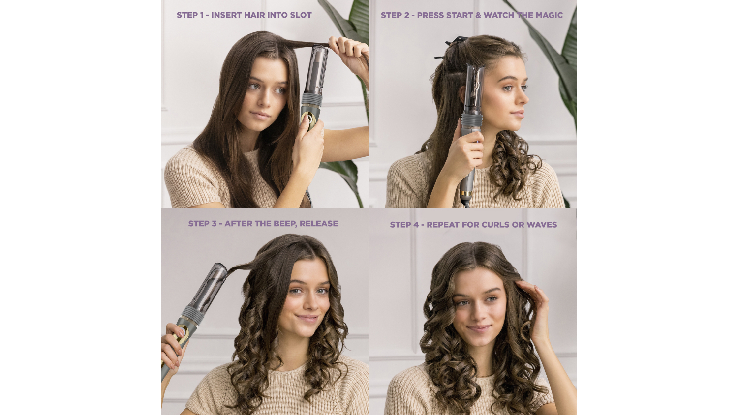 | Curl Type | 3 preset curl types (defined, loose, wavy), 3 curl directions (left, right, or alternating) |