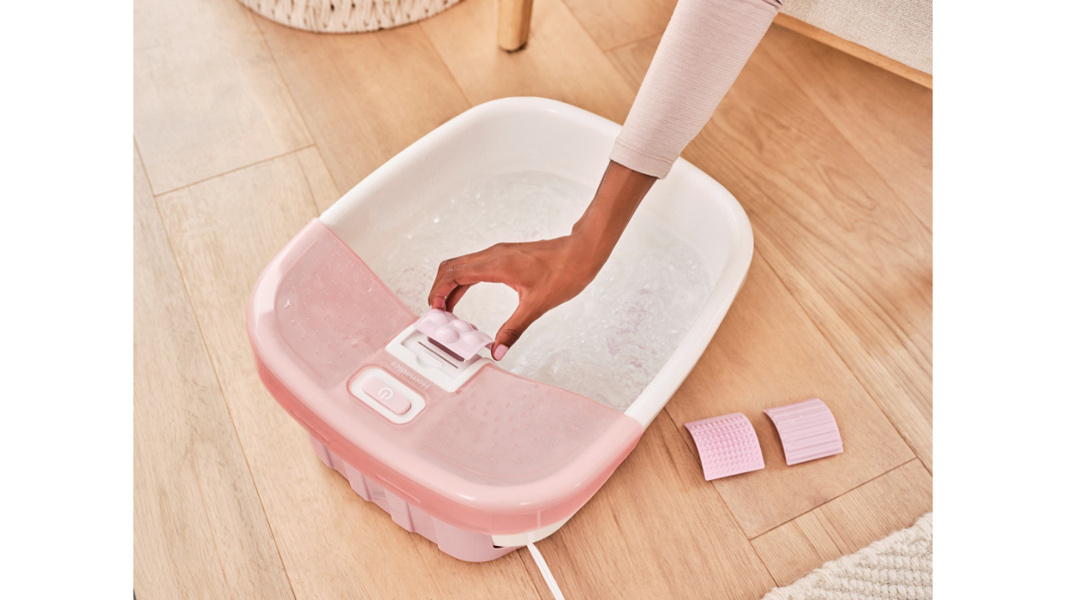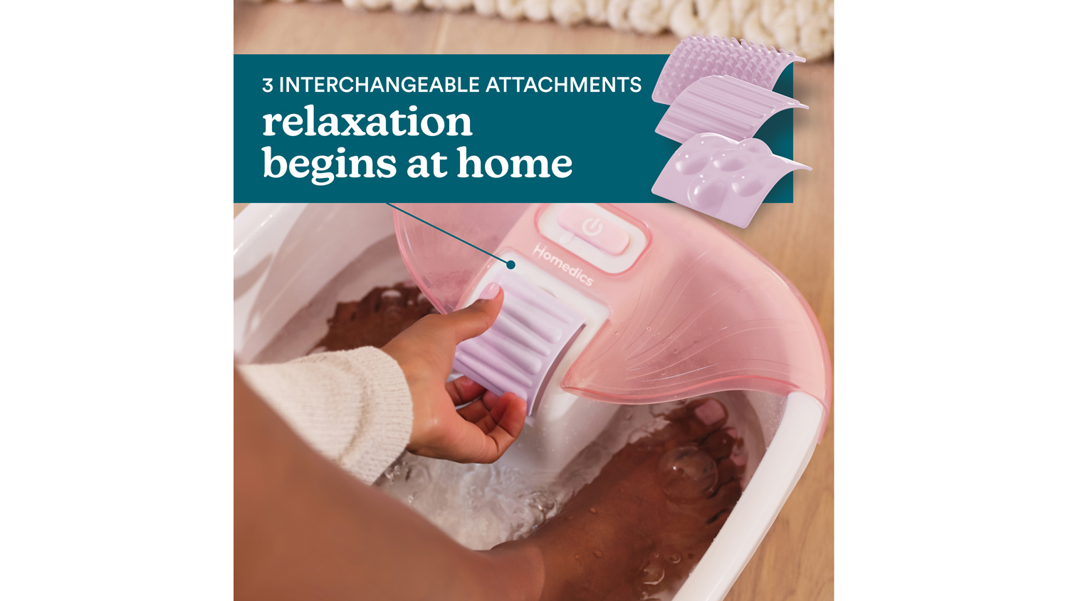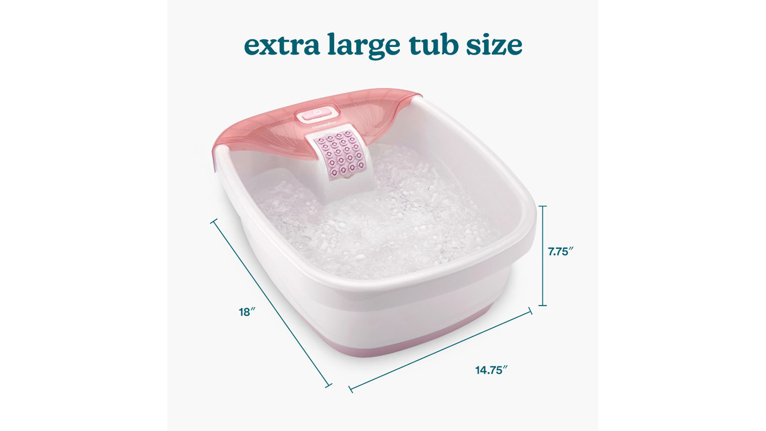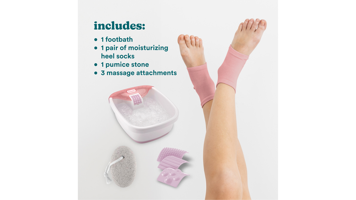 Step into the world of self-care with the Homedics Bubble Bliss Deluxe Foot Spa, the ultimate all-in-one retreat for tired, aching feet. This unit lets you experience the soothing sensation of a gentle bubble massage paired with heat maintenance technology, ensuring your soak stays perfectly warm while it melts away the day's stress. It also offers convenient relaxation with hands-free toe-touch controls and three interchangeable attachments designed to stimulate, exfoliate, and revive. Complete your pampering ritual with the included pumice stone and plush gel socks for professional-grade results that leave your soles feeling silky soft and rejuvenated.