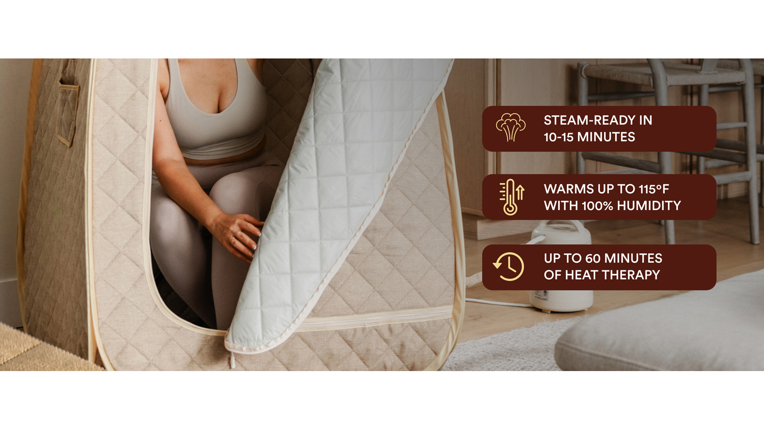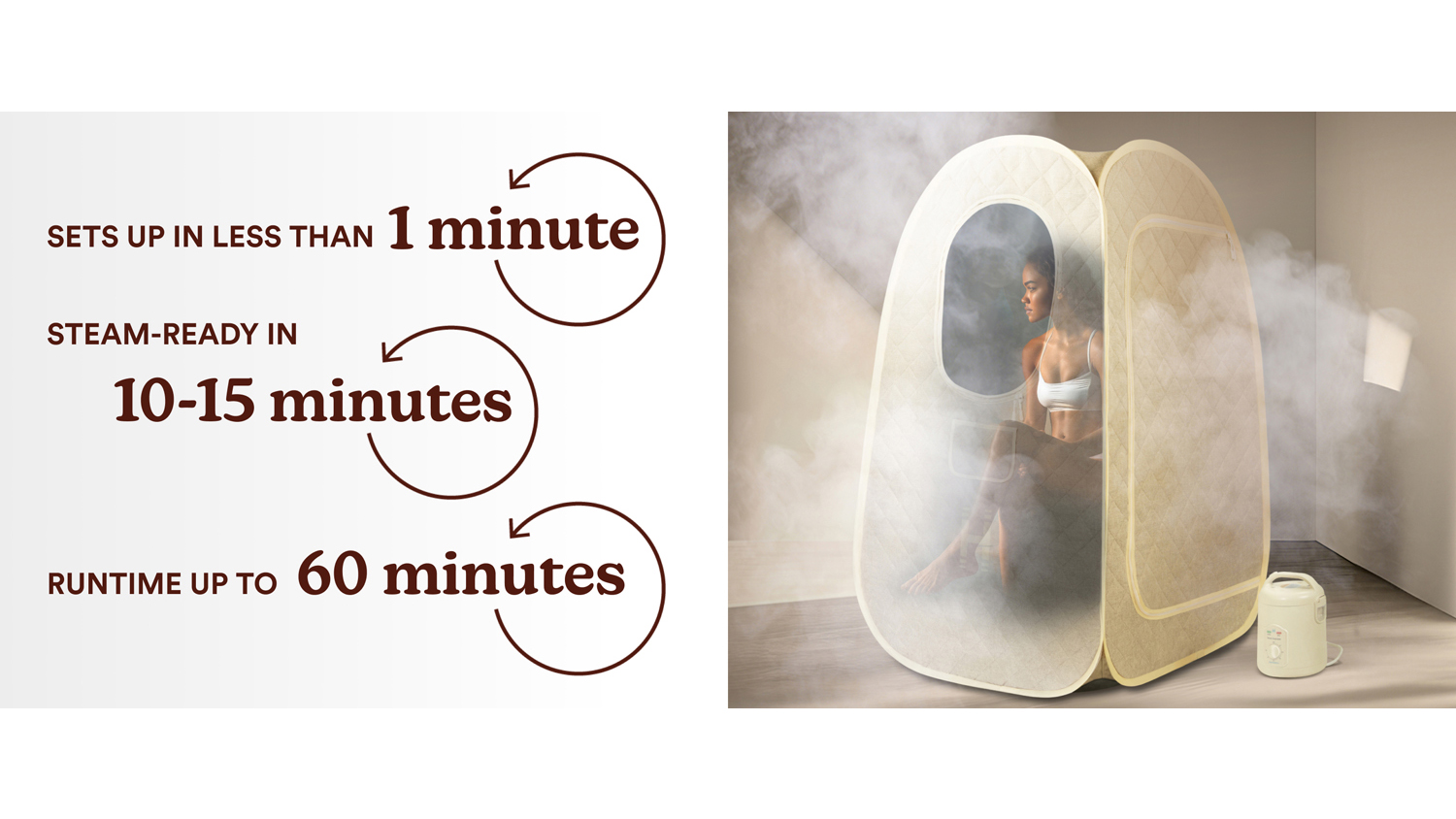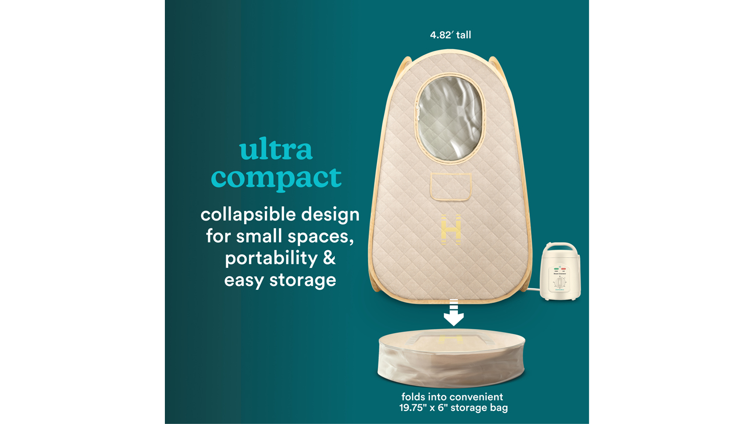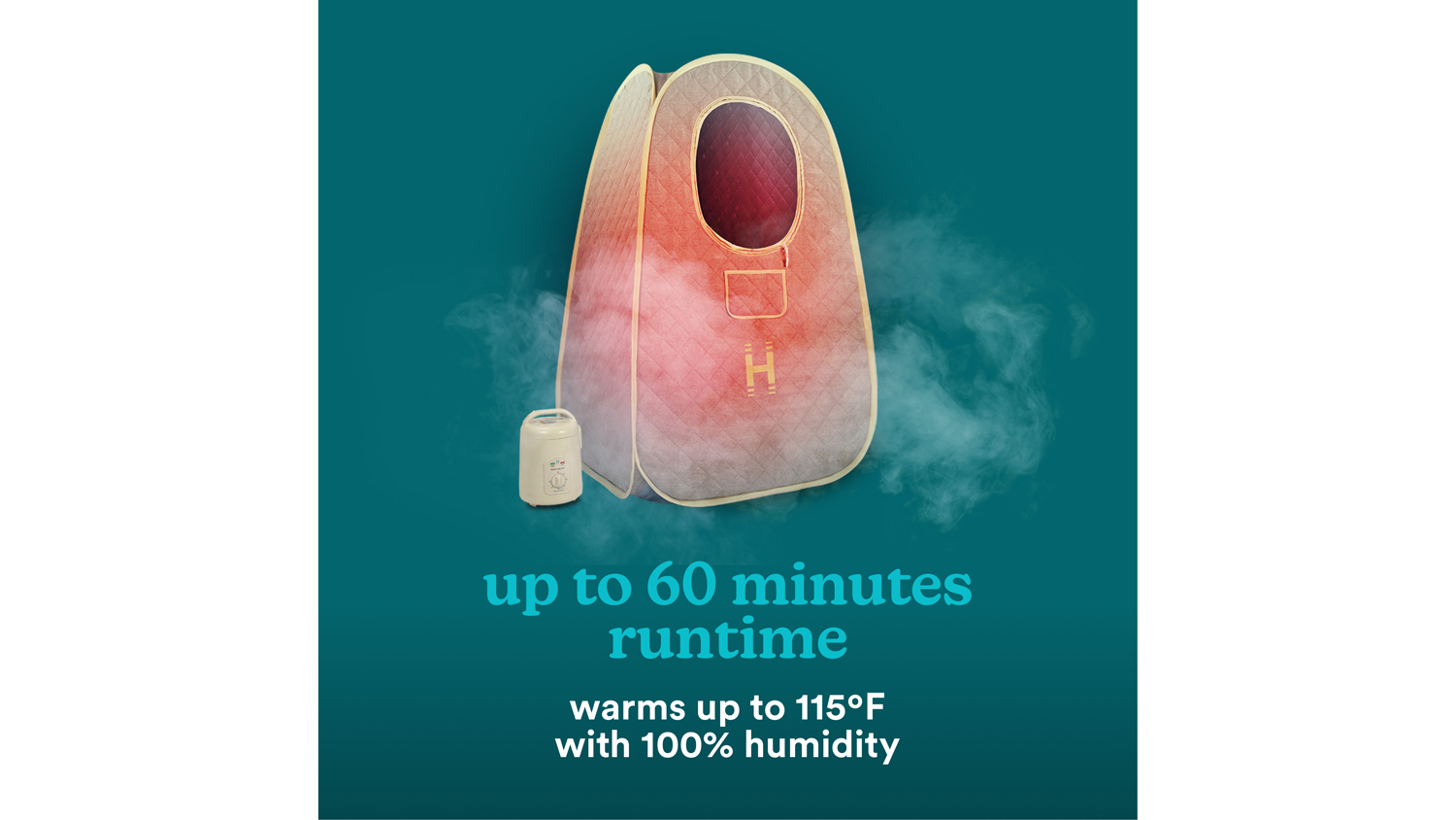Transform any room into a personal relaxation station with the Homedics Portable Steam Sauna. Boasting an innovative design, this unit simply sets up in under 90 seconds and is ready to provide a comforting 46°C temperature with 100% humidity in just 10-15 minutes. It also offers the benefits of heat therapy, such as deep muscle relaxation, skin radiance, and rejuvenating self-care—all within a compact, fully enclosed sanctuary. Plus, this portable sauna comes with a premium triple-layer material to efficiently retain heat.
