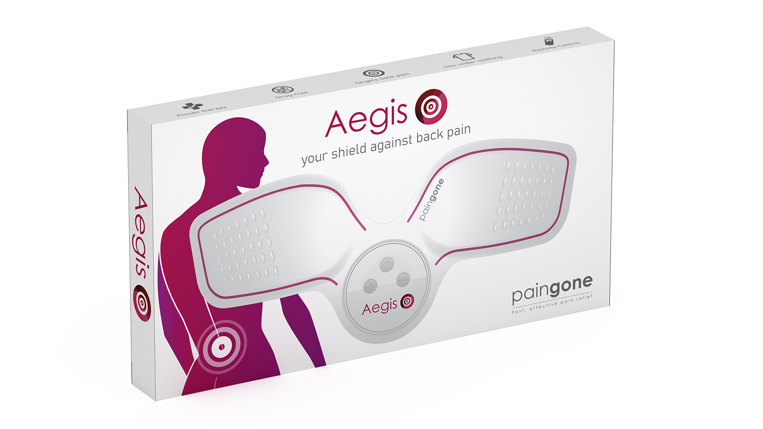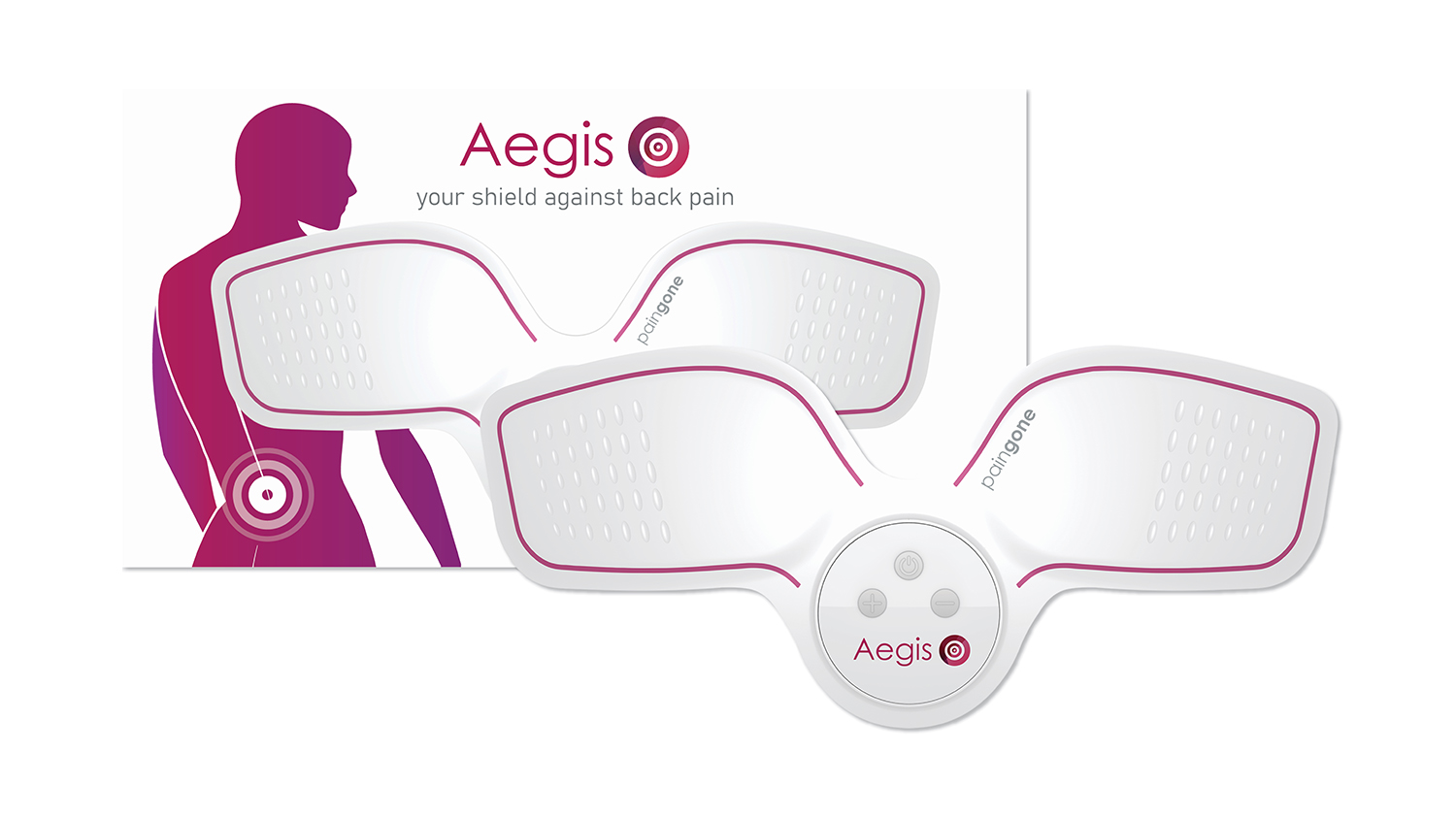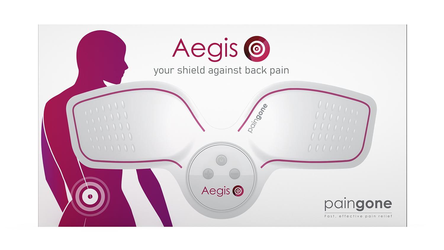 Help to manage your back pain with Paingone Aegis*. This powerful but soothing TENS machine is designed specifically to fit the lower back. Its large gel pads cover a wide application area, helping to provide relief across the lower back.