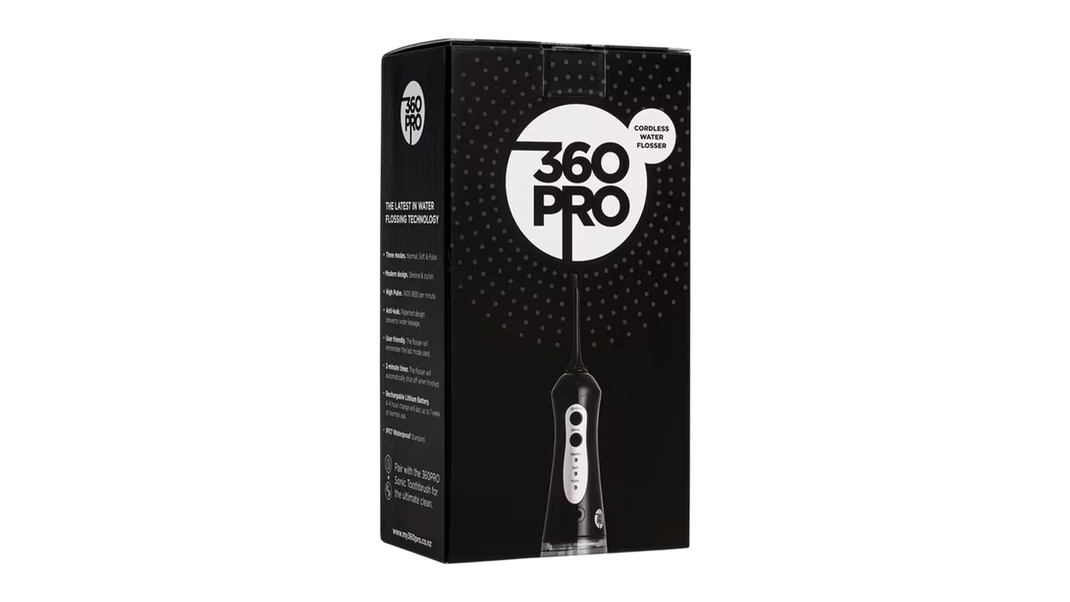 Maintain good oral hygiene, thanks to the 360PRO Cordless 200mL Water Flosser. A great addition to your dental care routine, this innovative device features 1400-1800 pulsations per minute to ensure it effectively cleans different corners of your teeth. It also features a convenient and slimline design that is easy to pack into bags for travel.