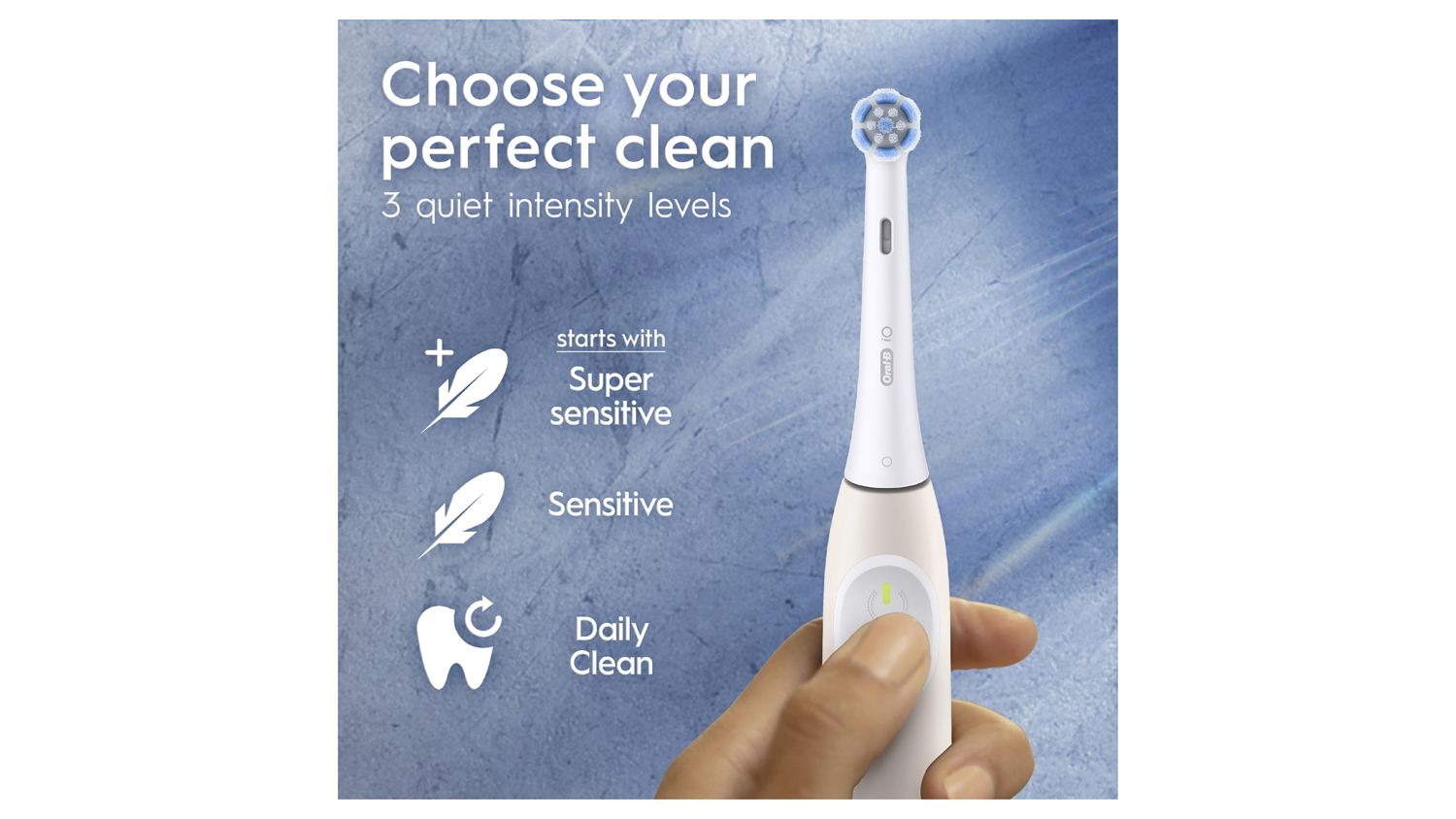 Welcome to the future of plaque removal. The Oral-B iO Series 2 Gentle Clean Sensitive Electric Toothbrush features the dentist-inspired round head with adaptive micropulsations and iO Revolutionary Technology. It also highlights a Visible Gum Pressure Sensor, 3 cleaning modes, and a 2-minute timer to help you build better brushing habits. Now you can enjoy a precise, gentle, and unbelievably thorough clean every time.