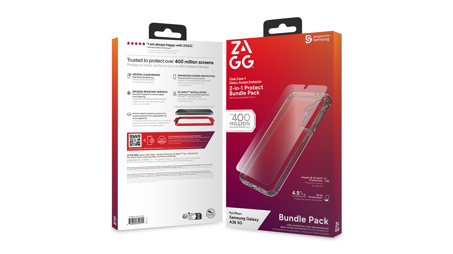 Shield your Samsung Galaxy A36 with the Zagg Essential Glass & Case Bundle. This combo features a reinforced glass screen protector that guards your device against scratches and shattering. Meanwhile, the slim case covers your phone from everyday drops without adding bulk.