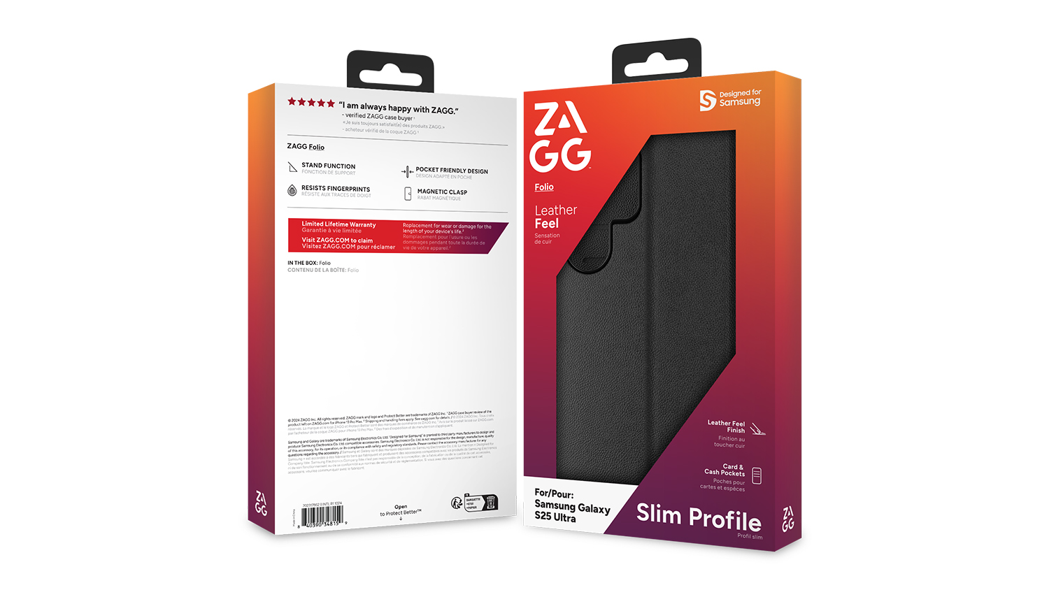 Safeguard your Samsung Galaxy S25 Ultra in style with the Zagg Folio Wallet Case. This sleek and functional case offers all-around protection with convenient slots for holding your cards or cash. The integrated cover also transforms into a stand for hands-free viewing on demand. Plus, it supports wireless charging, so you can power up without needing to remove the case.