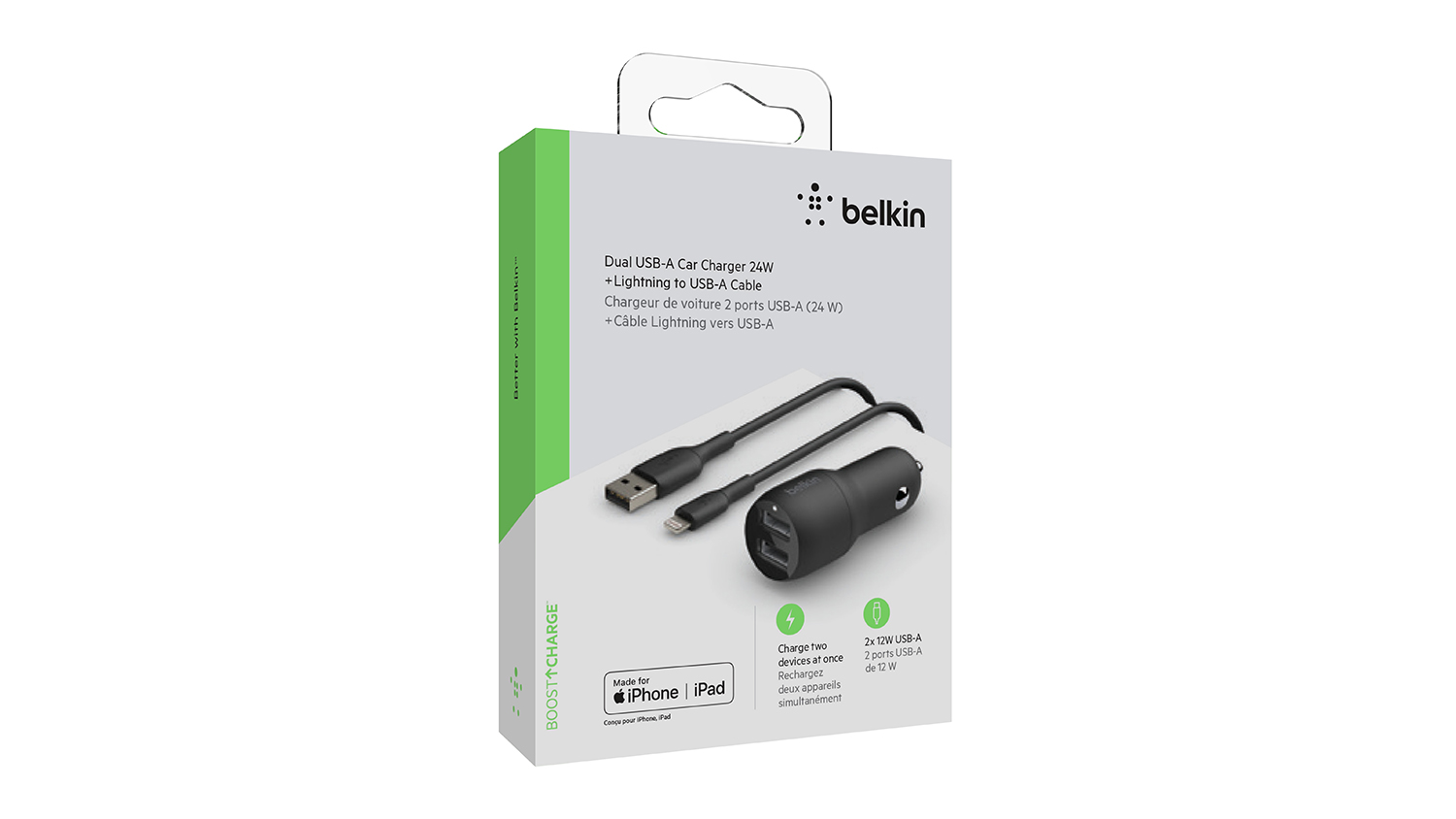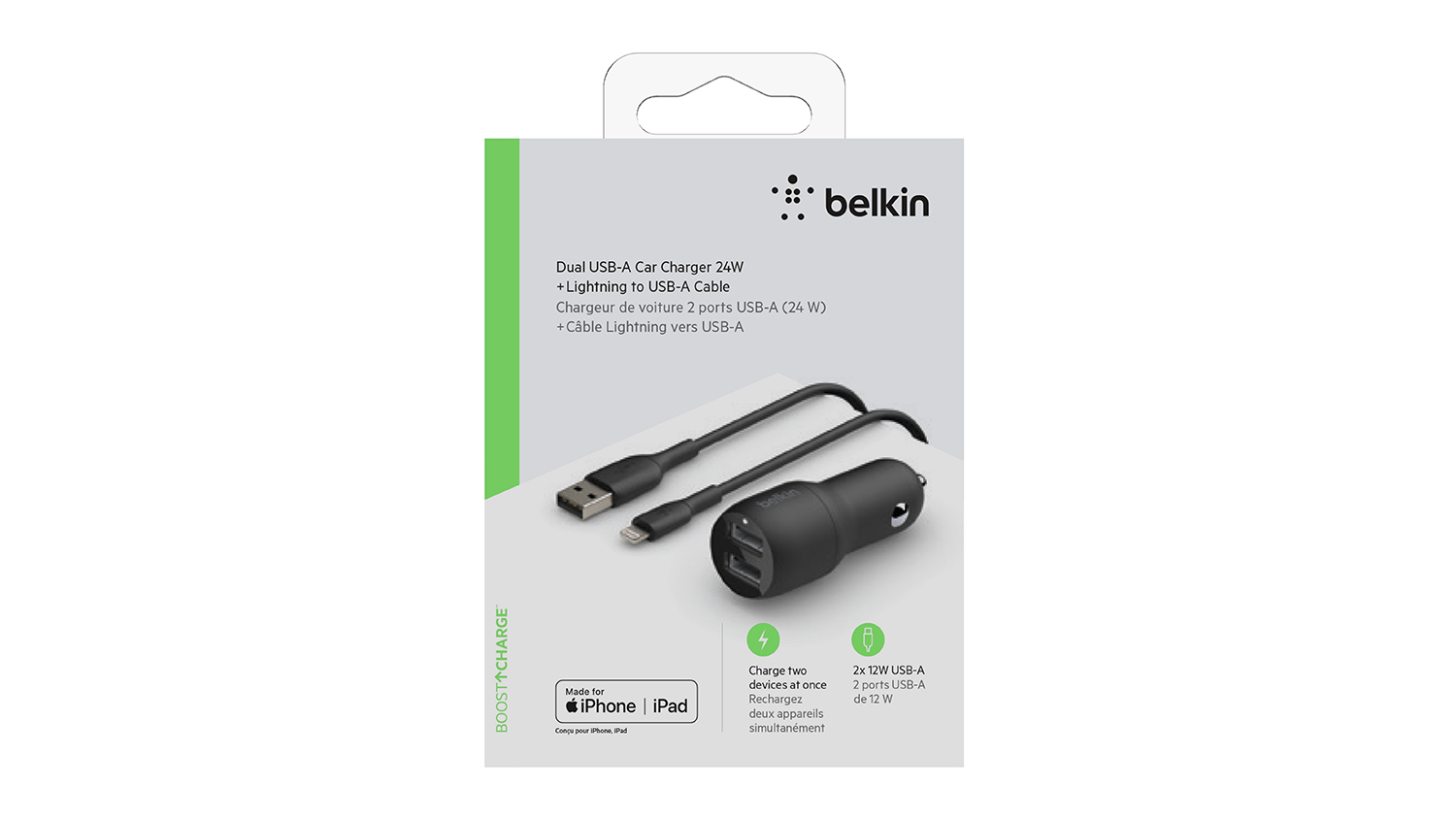 Belkin Boost Up Charge Dual USB-A Car Charger 24W + Lightning to USB-A Cable