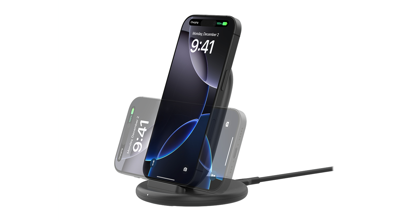 The design is clean and stable, and it's convenient to place the phone on the stand without plugging in cables.