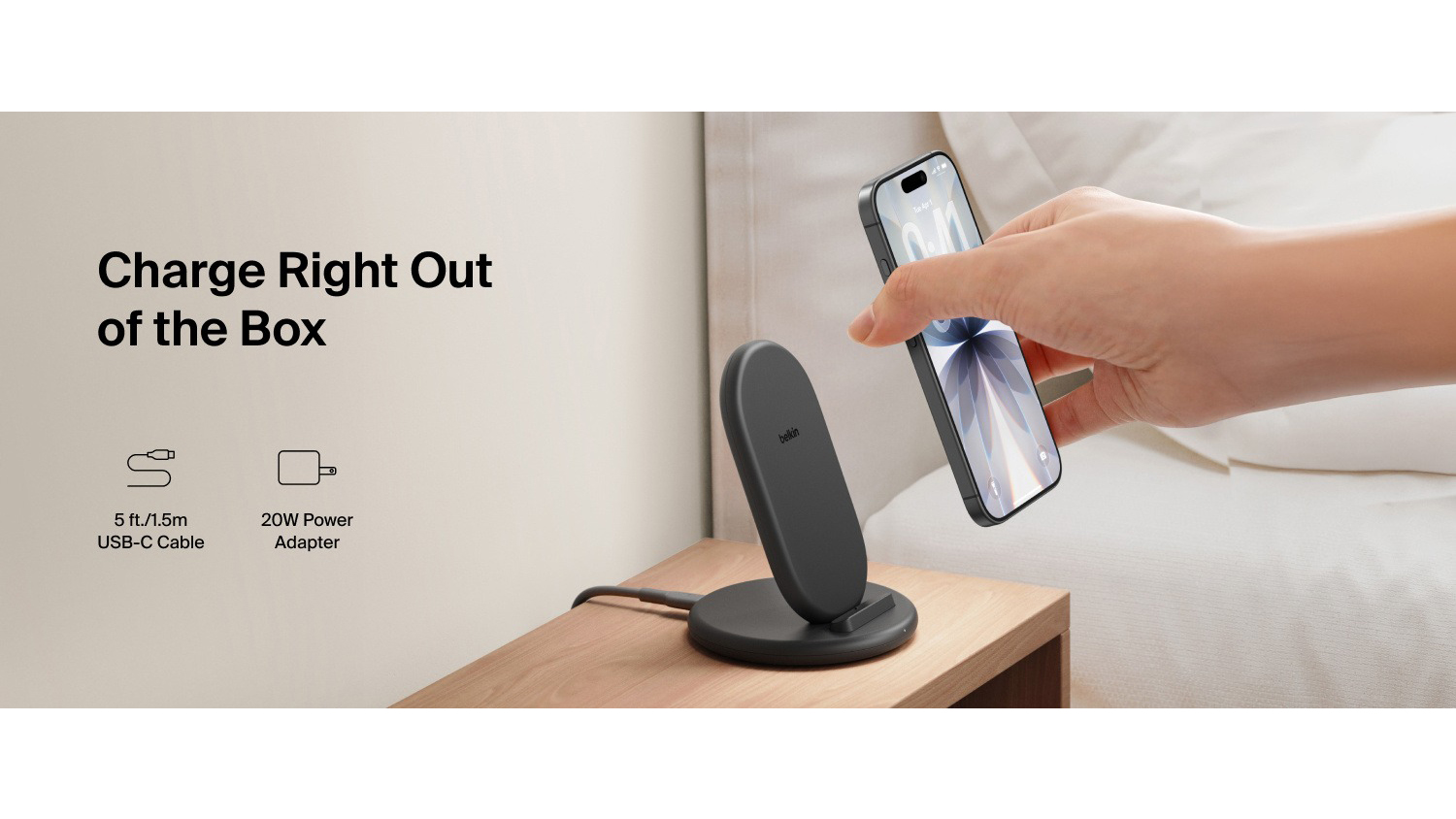 - Practical Build: This Belkin product comes in a travel-friendly compact structure, making it easy to bring on the go. It also includes a 1.5m USB-C to USB-C power cable, allowing you to charge right away2. Additionally, this unit highlights a slim, modern design matched with a stable non-slip base.