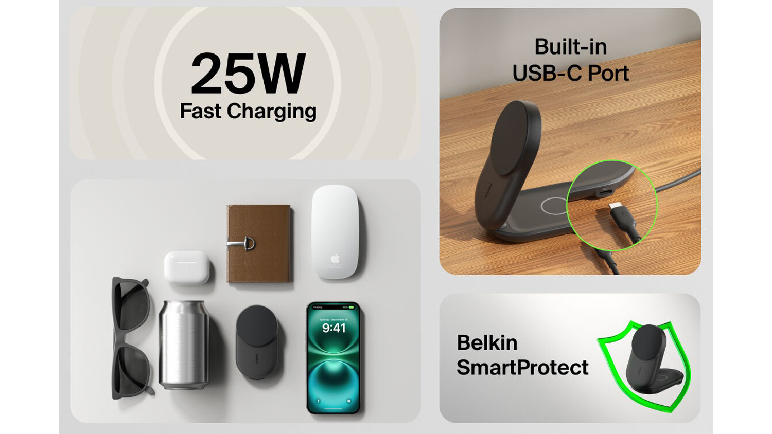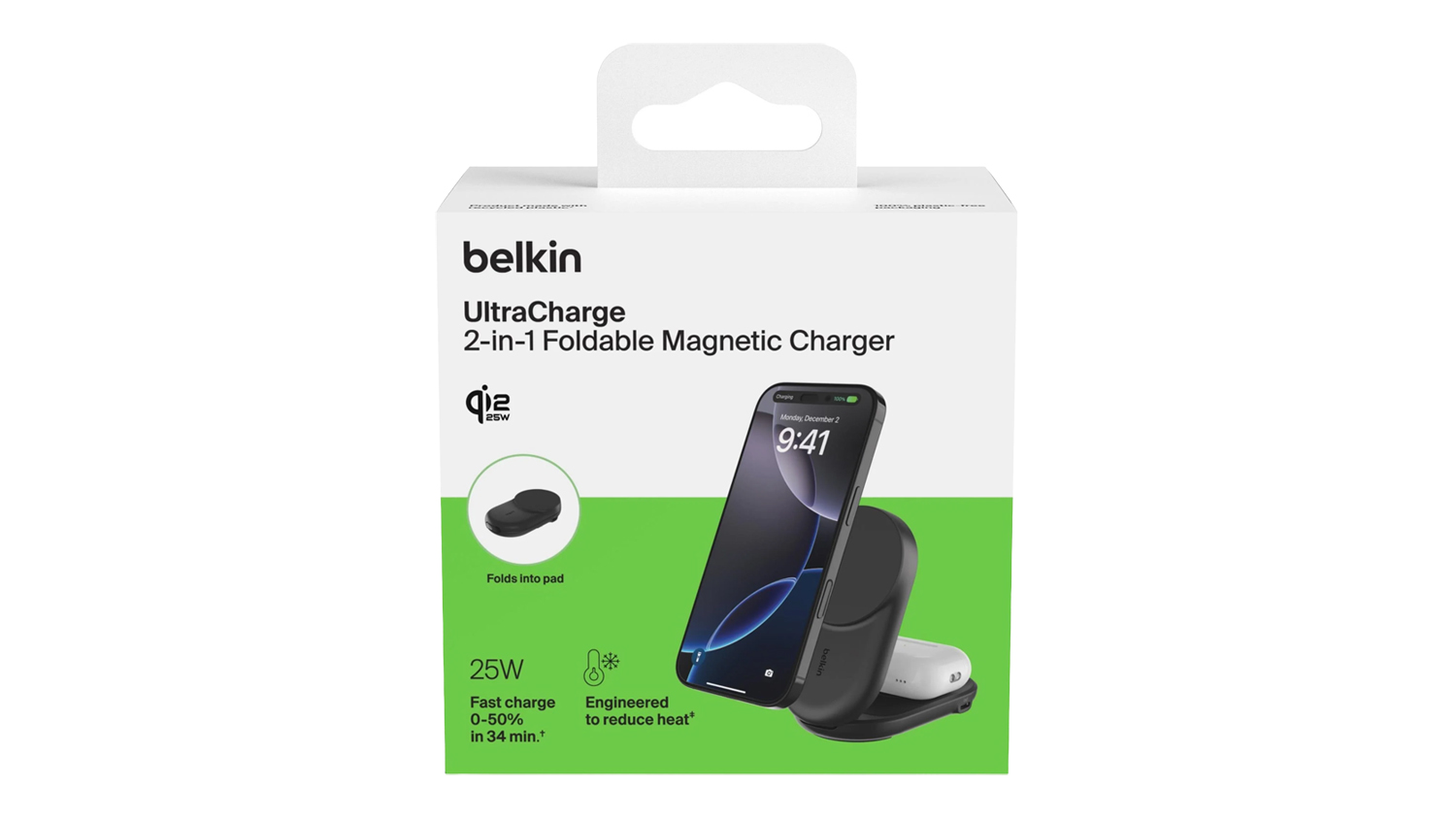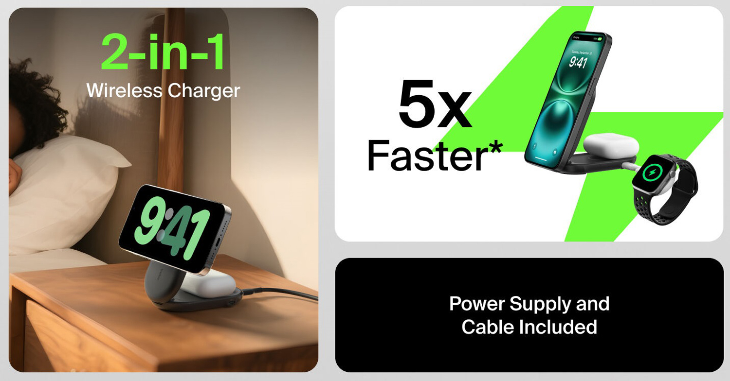 *Based on internal testing. Belkin Qi2 25W wireless technology charges iPhone 16 from 0-50% in 29 minutes using iOS 26 or newer. Charge time varies with environmental factors; actual results will vary.