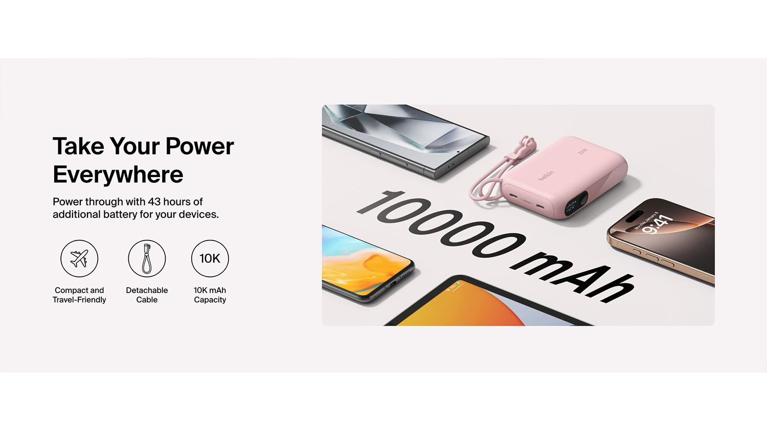 Replenish your devices on the go with the Belkin BoostCharge 10,000mAh Power Bank. A great choice for busy individuals, this accessory features an advanced 20W Power Delivery that recharges your devices rapidly. It also integrates two USB-C ports for simultaneous refuelling of your gadgets. Plus, it comes with a USB-C cable, so you’re ready for quick top-ups anytime, anywhere.