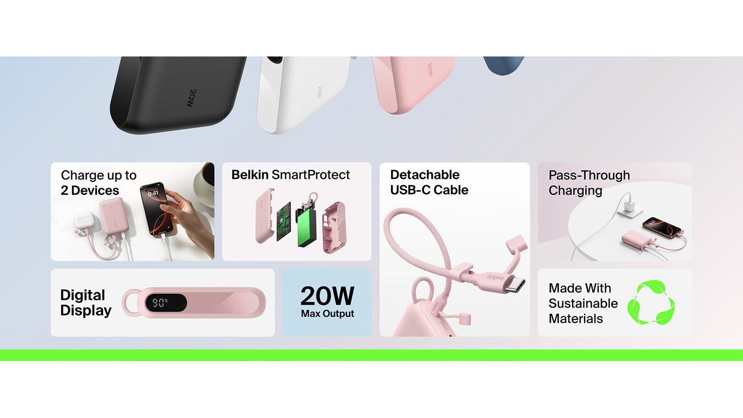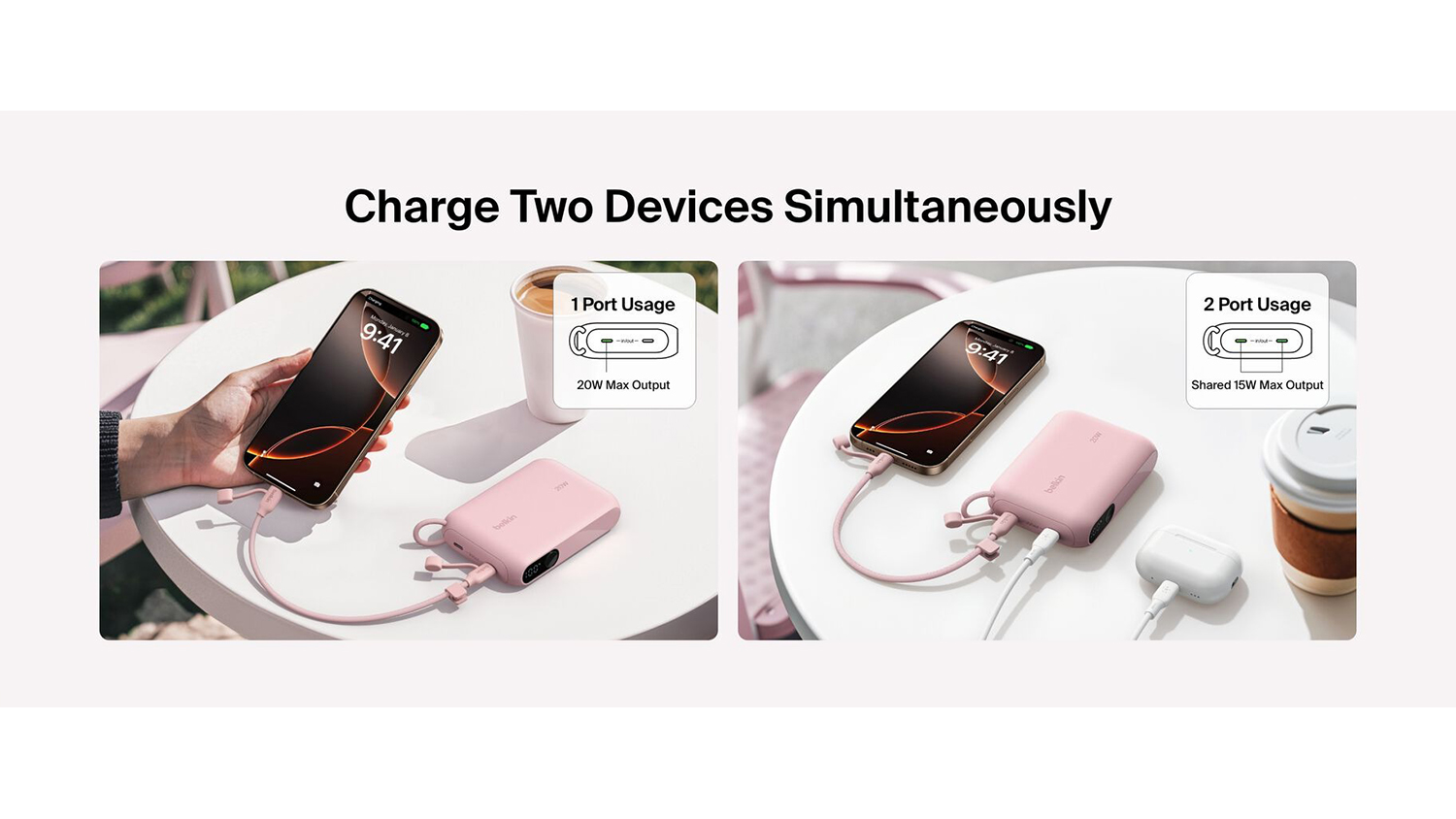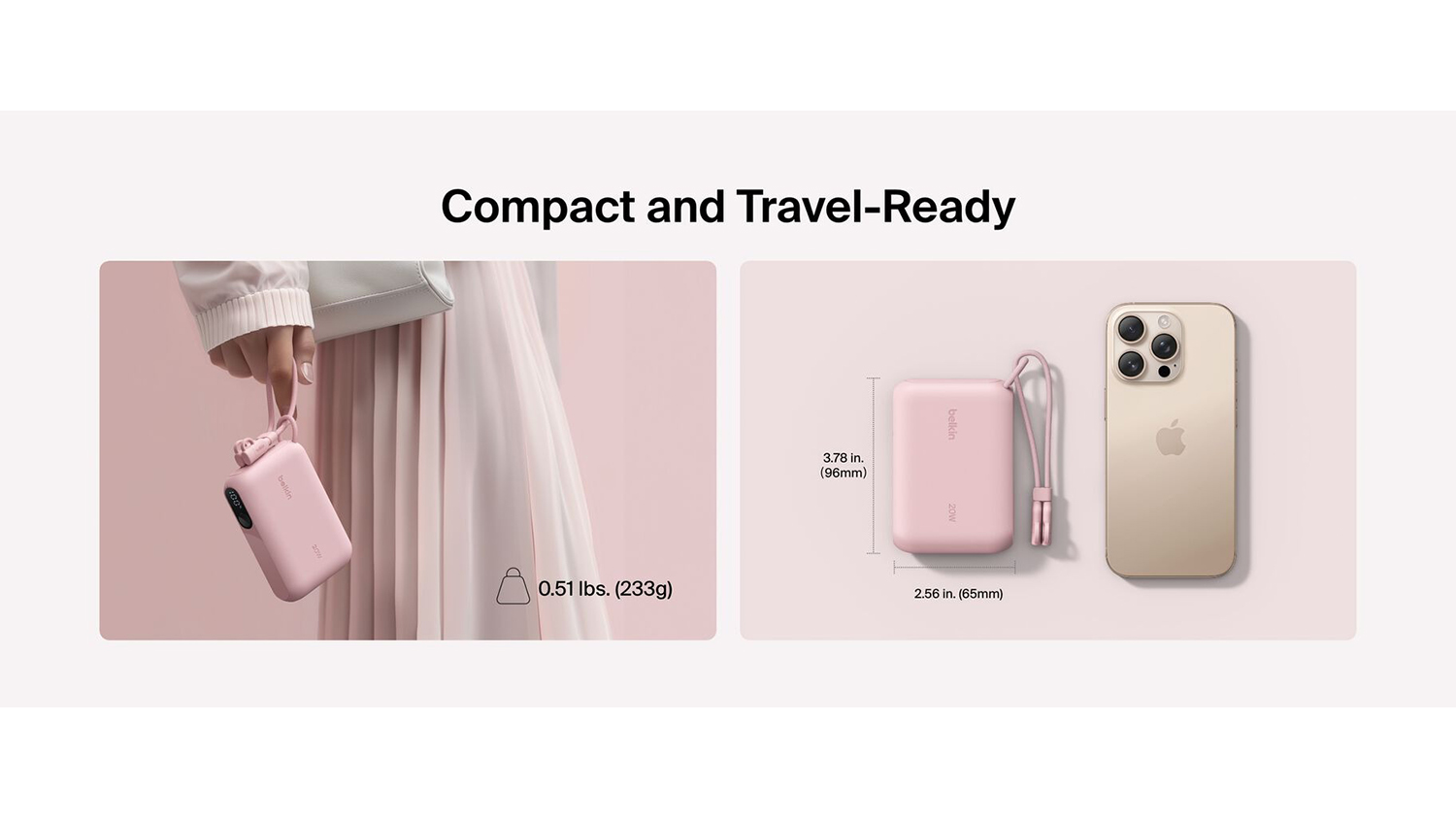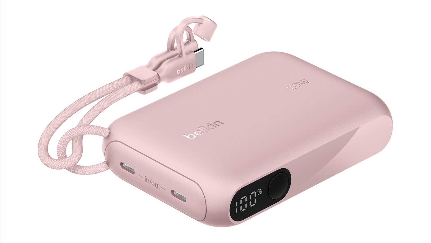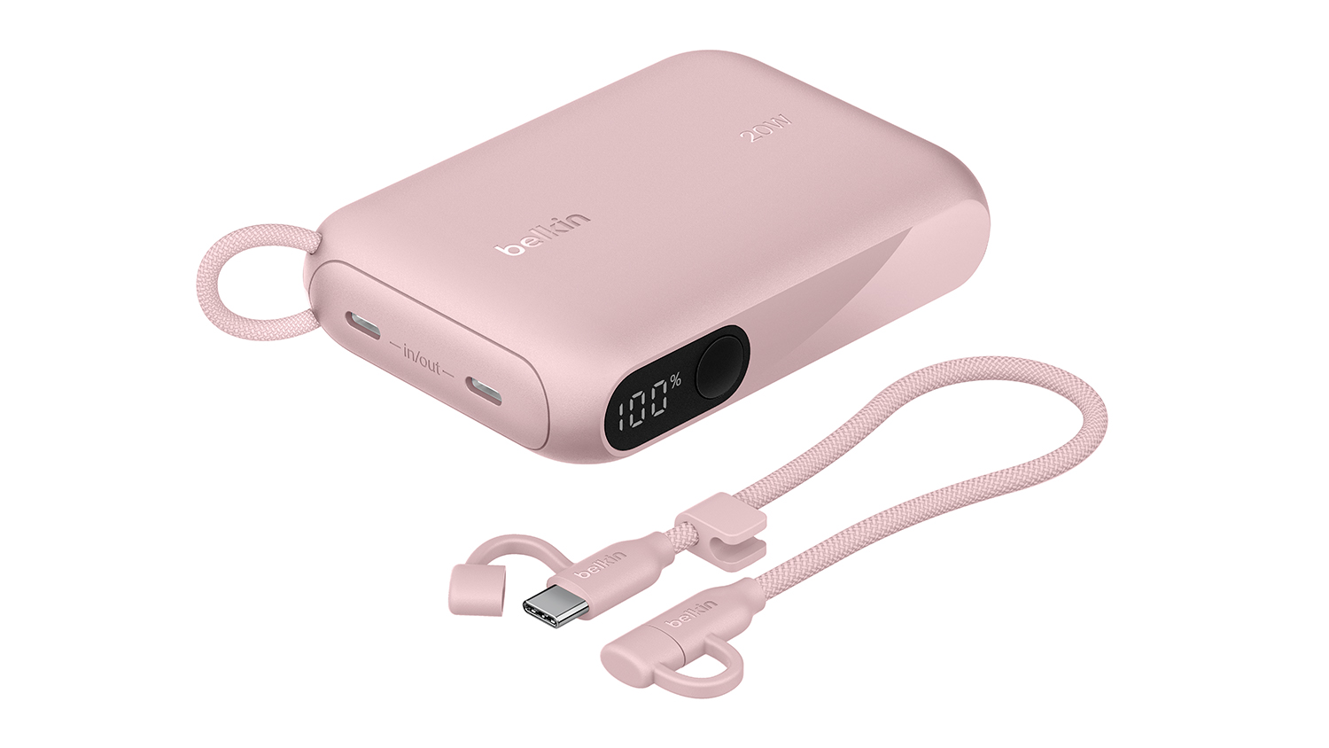 Belkin BoostCharge 10,000mAh Power Bank with USB-C Cable - Pink (2 x USB-C Port, BPB027fqPK)