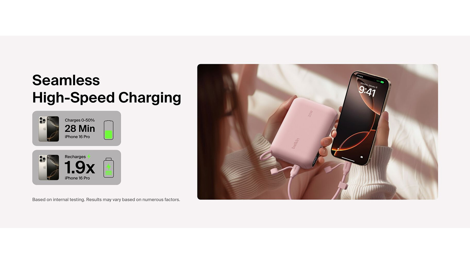*Maximum additional video playback hours calculated by comparing the cell capacity of this power bank with the maximum video playback hours achievable by the iPhone 16 under normal conditions. Actual results will vary depending on various factors for individual users.