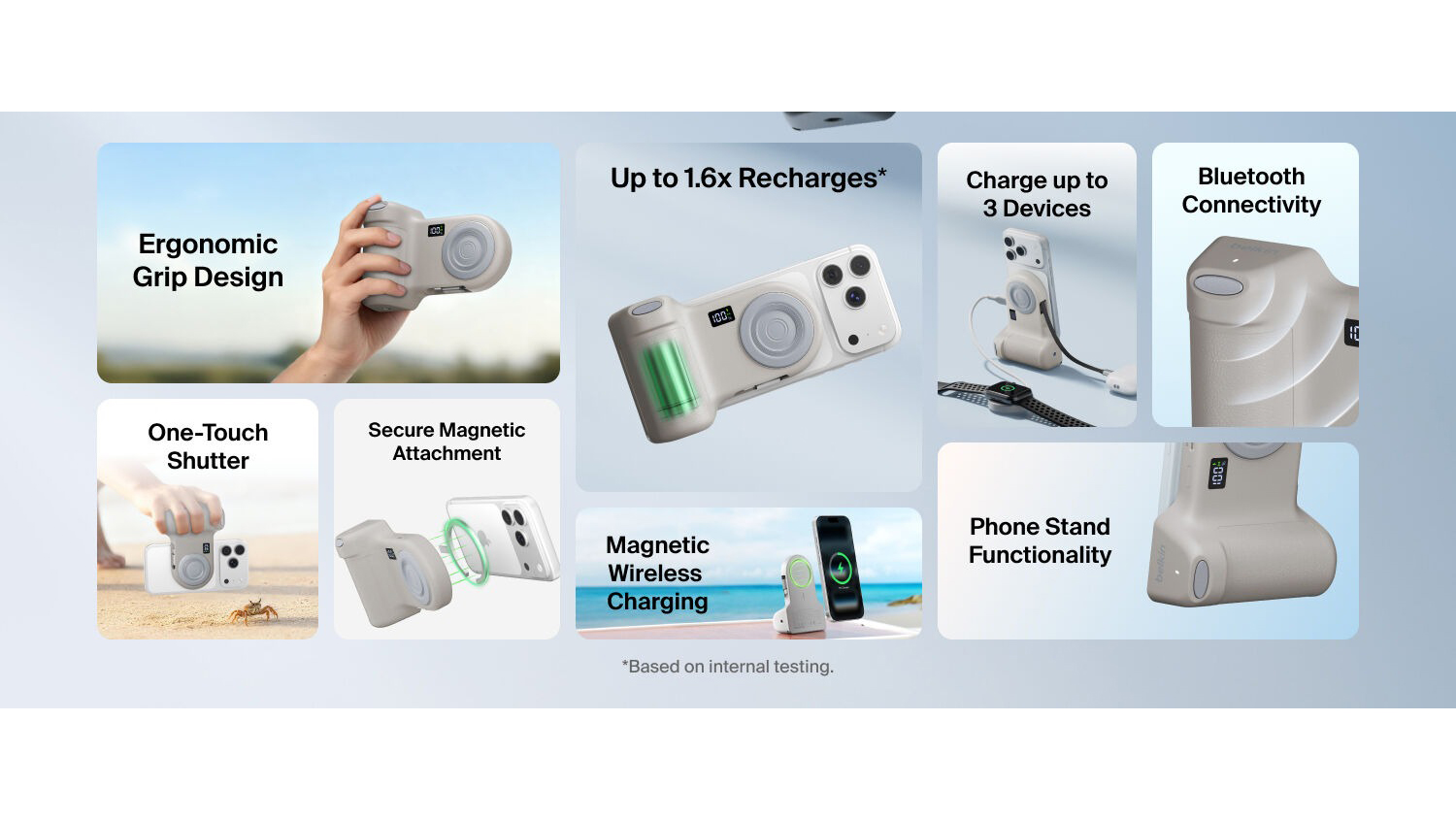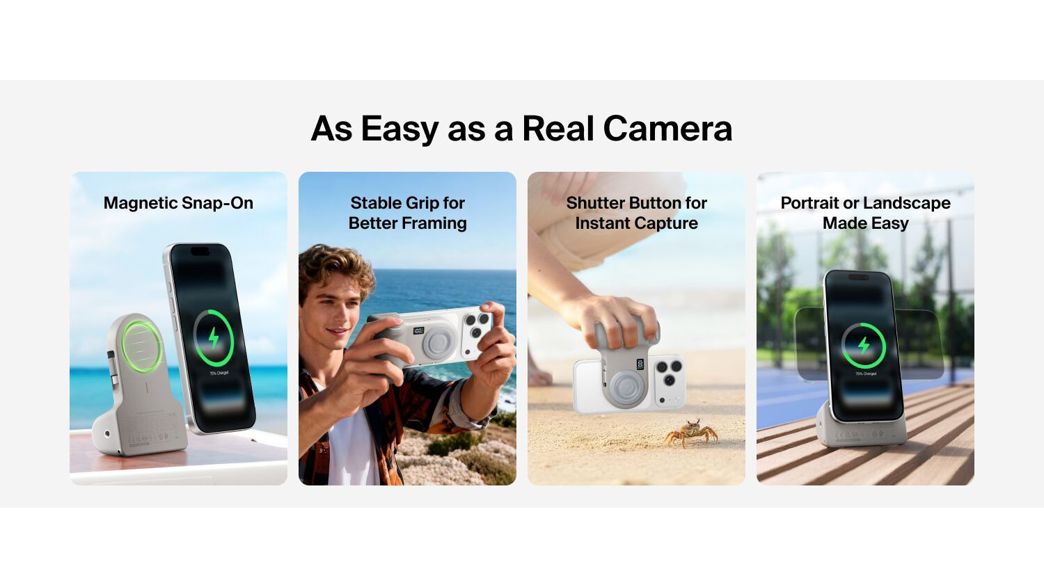 Boost your phone’s capabilities using the Belkin Stage PowerGrip 9300mAh Magnetic Charging Camera Grip Power Bank with Retractable USB-C Cable. The ultimate companion for on-the-go content creators, this accessory combines an ergonomic camera grip, portable power bank, and a handy phone stand all in one unit. It also boasts a portable design, so you can conveniently bring it anywhere you go.