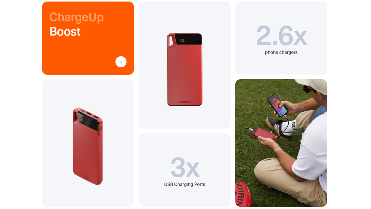 Cygnett ChargeUp Boost (4th Gen) 10,000mAh Power Bank - Red