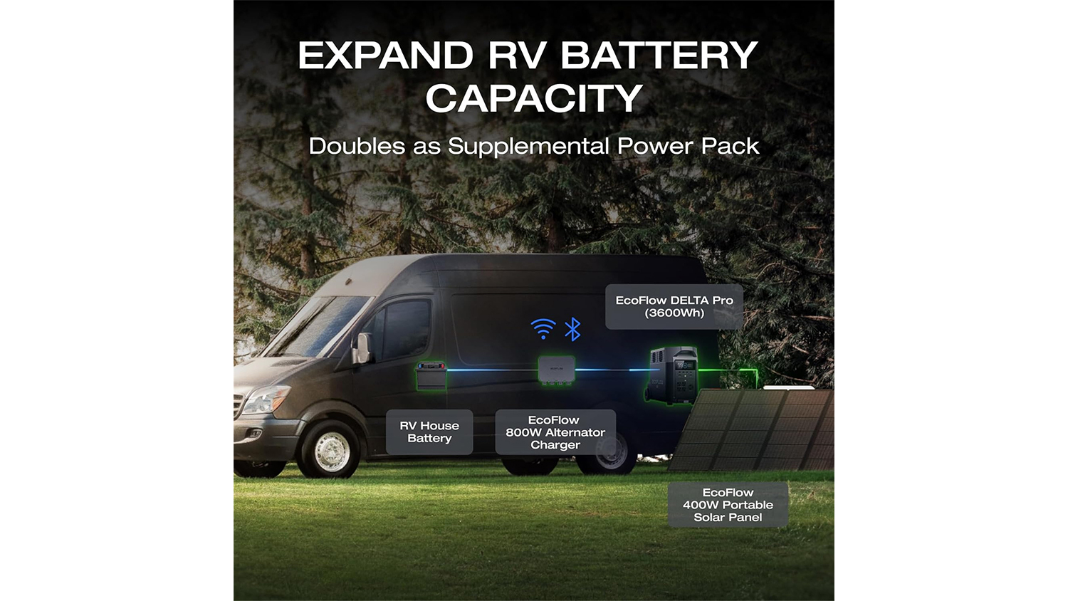 Power your batteries while on the road with the EcoFlow 500W Alternator Charger. A practical addition for frequent travellers, this unit lets you efficiently top up a 1kWh power station in about 2.1 hours. It also offers a 3-in-1 functional design that works as a charger, maintainer, and jump starter. Plus, it expands your existing RV house battery capacity, allowing you to run your essential appliances for longer.