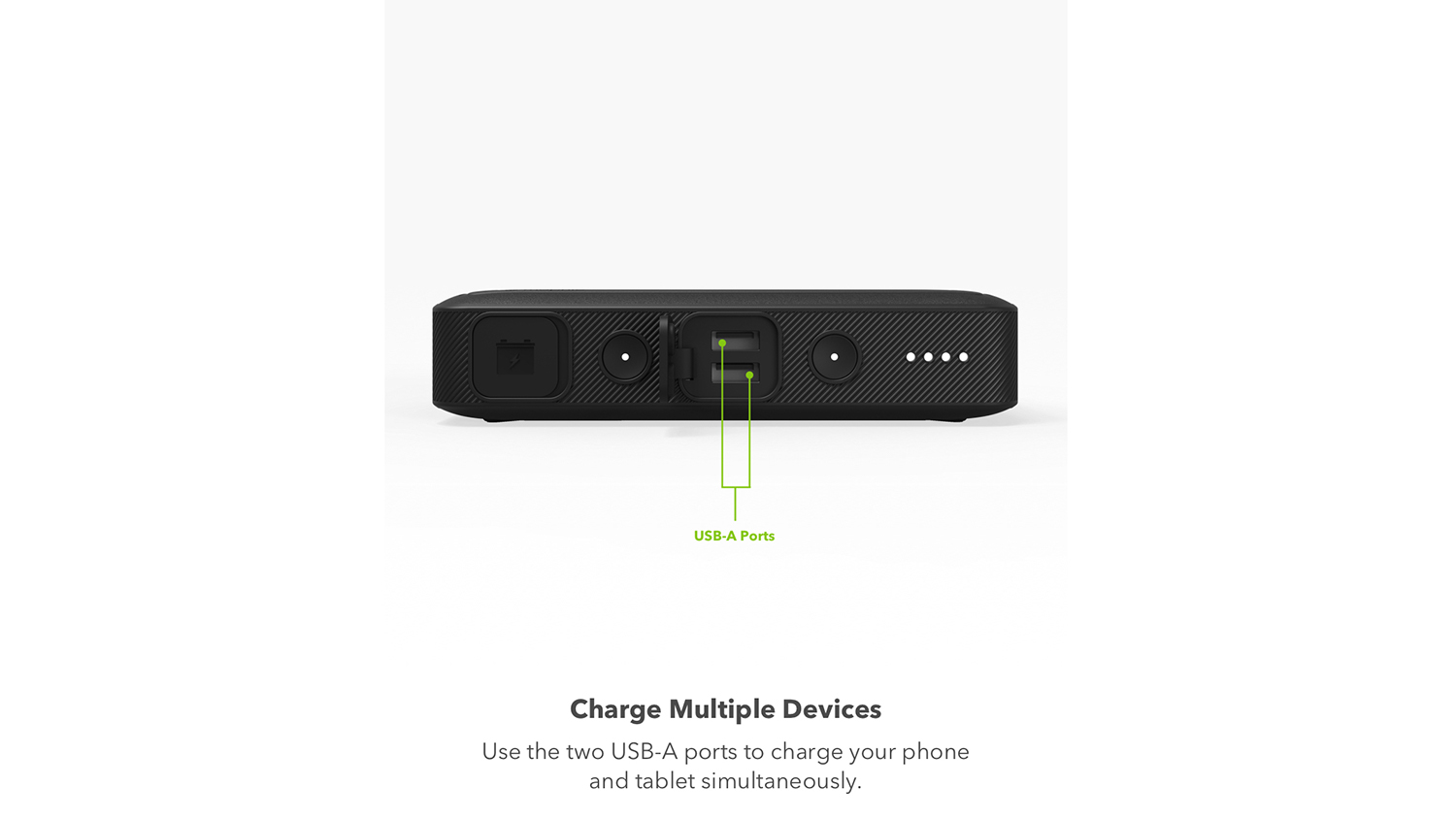 Small yet powerful! This Mophie 8,100mAh Universal Battery Powerstation Go Rugged Compact offers a high-performance system that's capable of charging your devices and jump starting your car in an emergency. In low light conditions, at night, or to alert others of danger, you can take advantage of the power bank's floodlight and red-light SOS function. Furthermore, the Mophie power bank has a dependable cell with an 8,100Ah capacity, so it is always ready for use when needed.