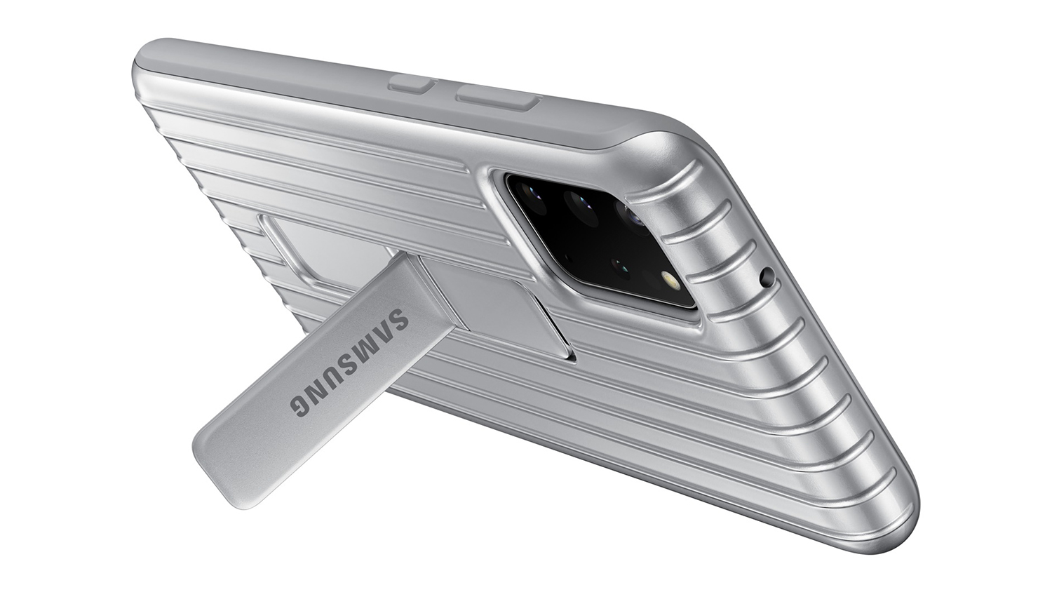 Functional and robust, the Protective Standing Case from Samsung features a durable structure that shields your phone from accidental drops and falls. Made for the Samsung Galaxy S20+, this case furnishes wireless charging compatibility and incorporates two kickstands to give you the best viewing experience in comfort. This protective case does not obstruct any of your phone’s functions, including the power and volume buttons, headphone and charging ports, and cameras.