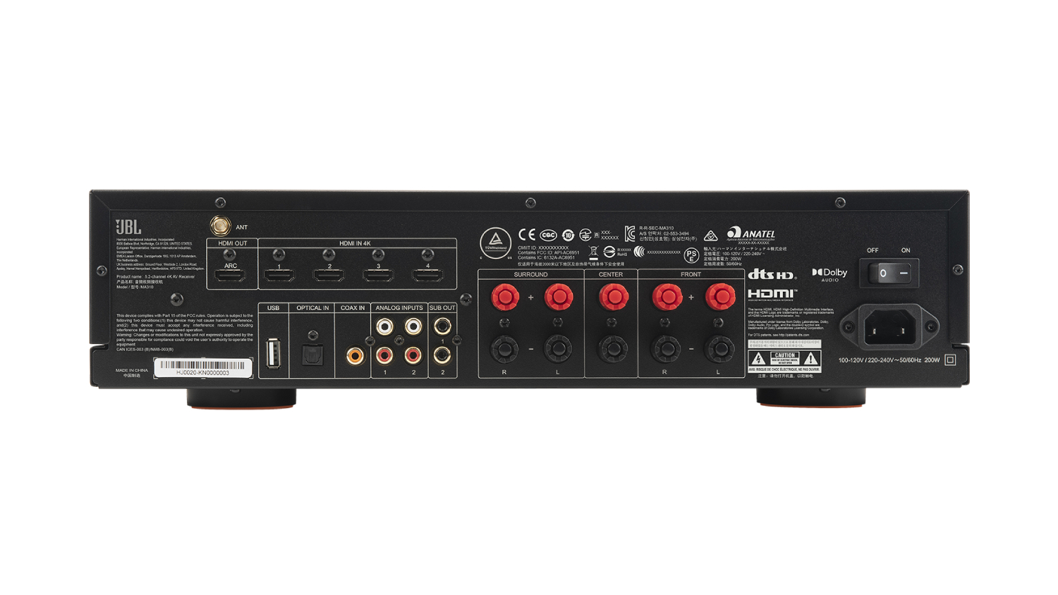 Upgrade your home entertainment system with the JBL MA310 5.2 Channel 4K AV Receiver! This high-performance device delivers exceptional audio and video, with features like 4K HDMI, Dolby Atmos, and DTS:X. It also lets you tune in to your favourite music wirelessly via Bluetooth.