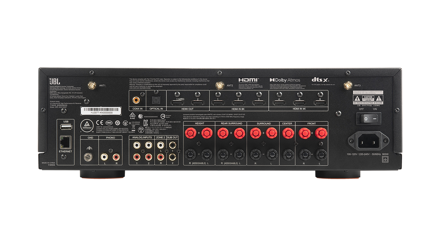 Upgrade your home entertainment setup with the JBL MA9100HP 9.2 Channel 8K Wireless AV Receiver. Featuring 8K HDMI visuals, cutting-edge Dolby Atmos, DTS:X audio decoding, and nine-channel Class D amplification, this device offers superb audiovisual performance for an unrivalled viewing experience. It also features versatile connectivity options, including HDMI, Bluetooth, AirPlay 2, and Google Chromecast, plus a secondary HDMI output for flexible multi-room entertainment.