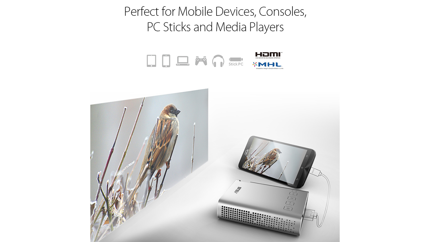 Portable and entertaining, the Asus ZenBeam E1 Portable LED Projector is a pocket-sized projector that allows you to view photos and videos by easily connecting devices such smartphone, game consoles, laptop, and other compatible media streamers to it. For additional convenience and quick connectivity, it comes with an HDMI cable and carrying case.