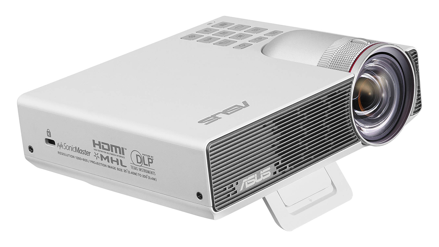 Powerful and battery-operated, the Asus ZenBeam P3B Portable LED Projector boasts a sleek and portable design. With its size and inbuilt speaker, this projector makes a great one-body setup entertainment system in your home. Its extensive connectivity lets you connect various external devices, USB flash drive, and even microSD cards.