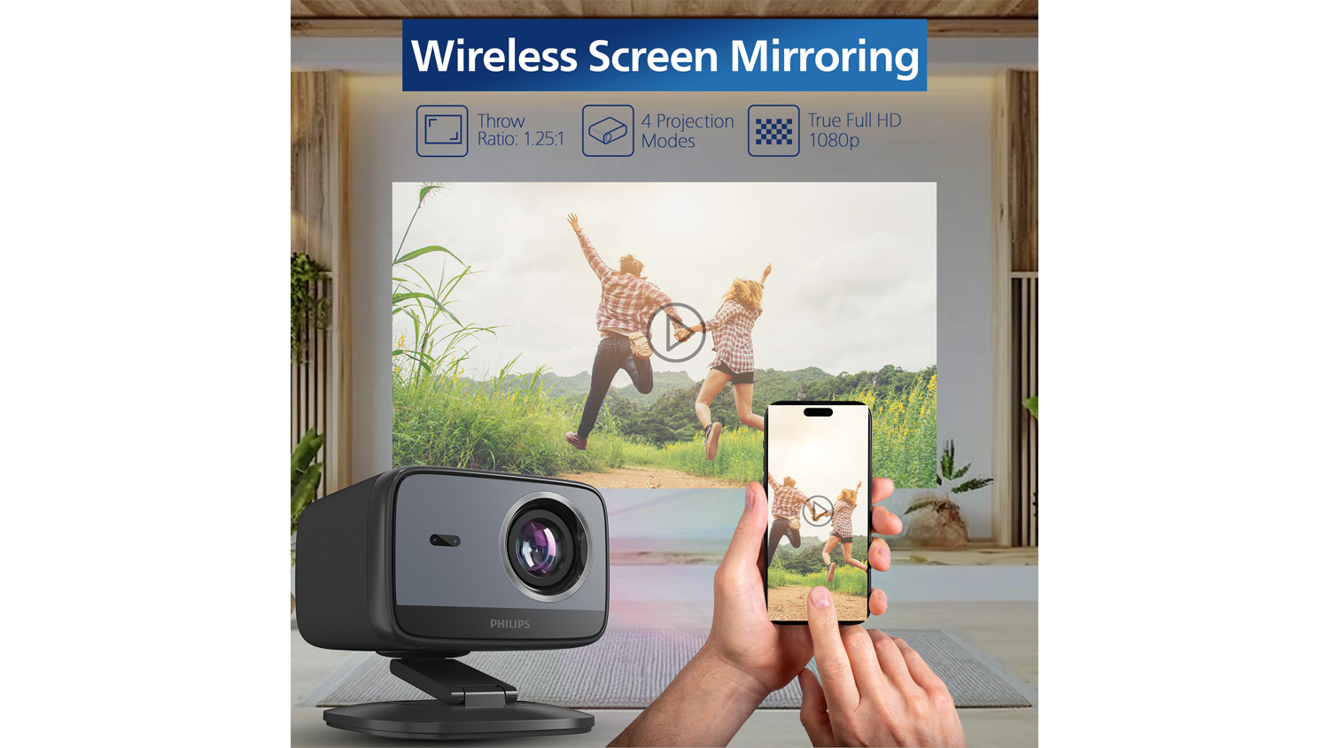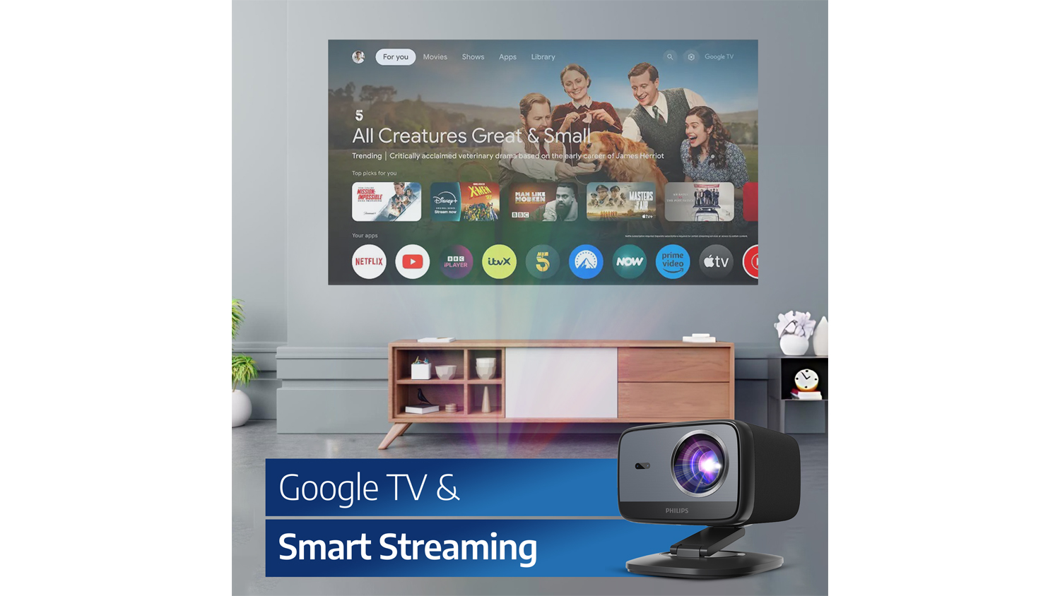 Watch your favourite content like never before with the Philips NeoPix 450 FHD Smart Home Projector. Providing total immersion, this unit lets you experience movies, shows, and games on a massive screen up to 100 inches. It also comes with stereo speakers for high-quality sound every time. Plus, it offers more innovative features like Google TV, Wi-Fi Screen Mirroring, Autofocus, and Autokeystone.