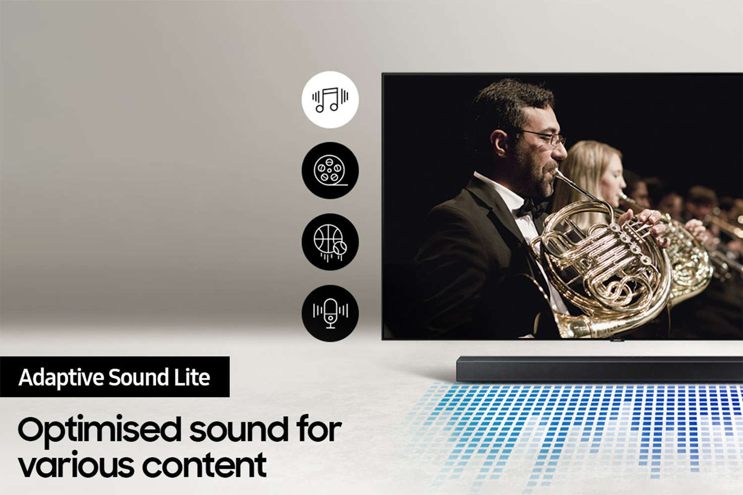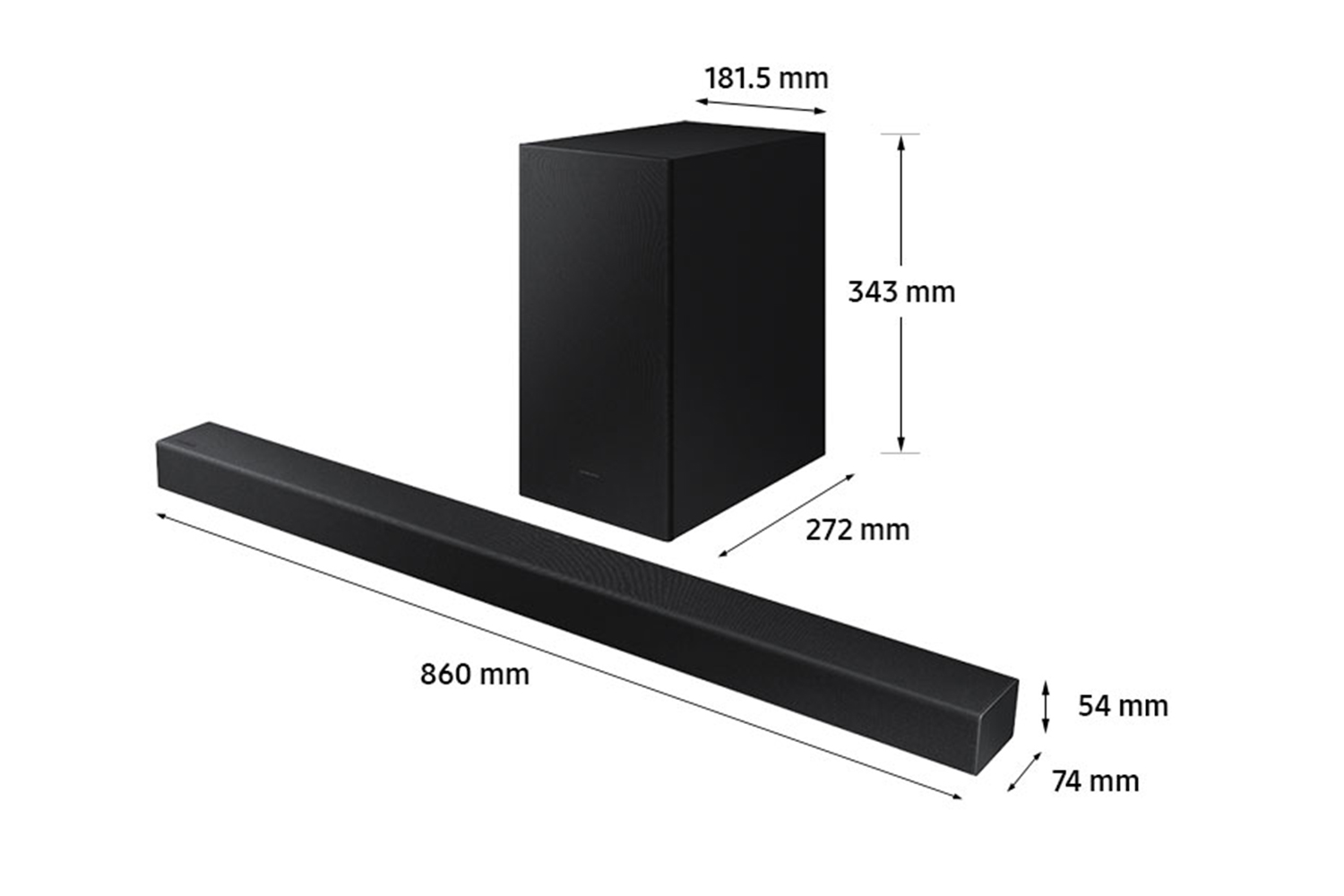 Elevate your sound experience with powerful bass with the Samsung 2.1 Channel A450 Soundbar.