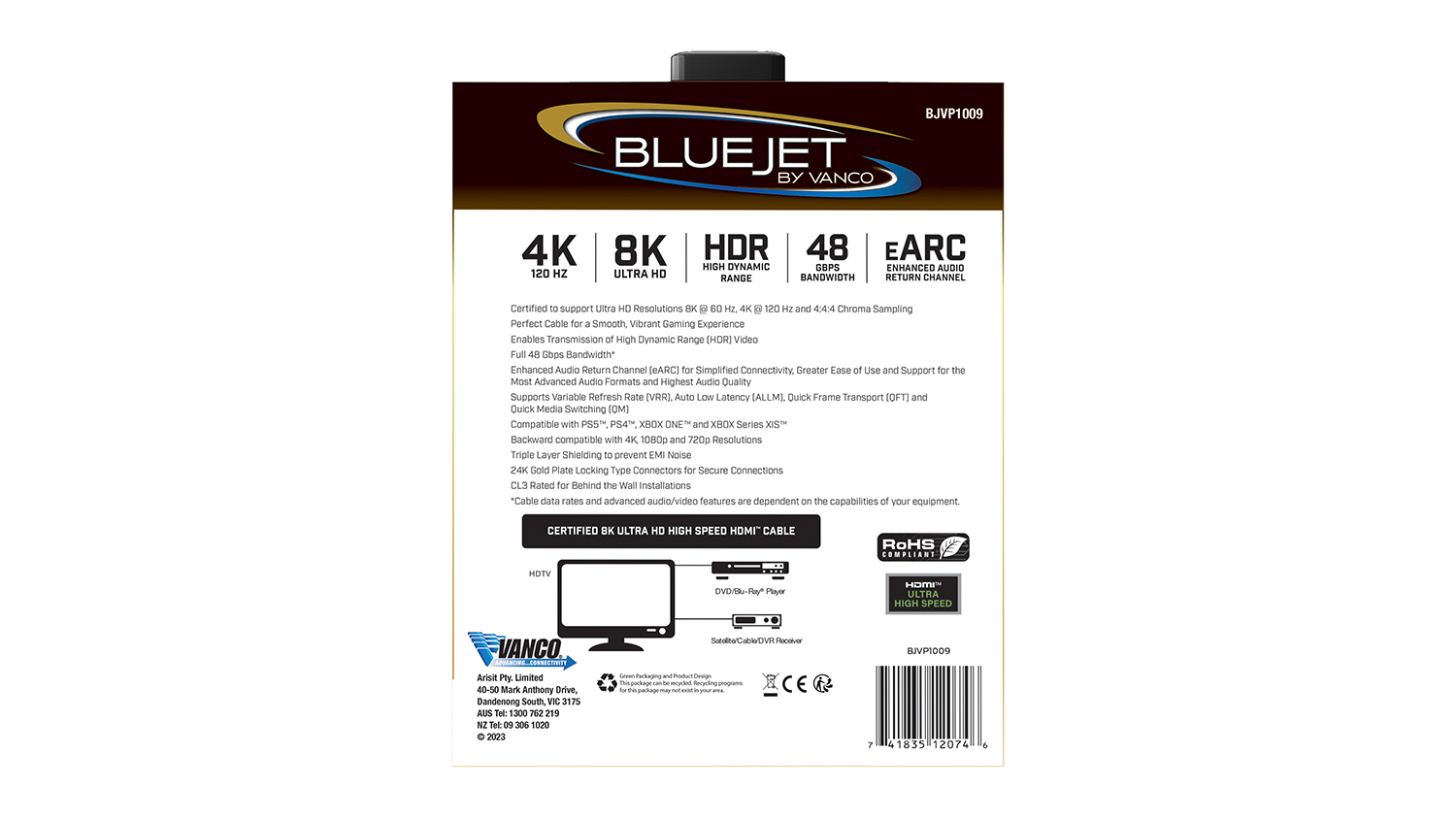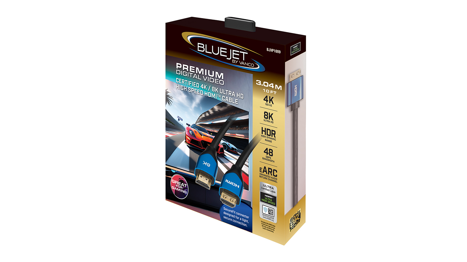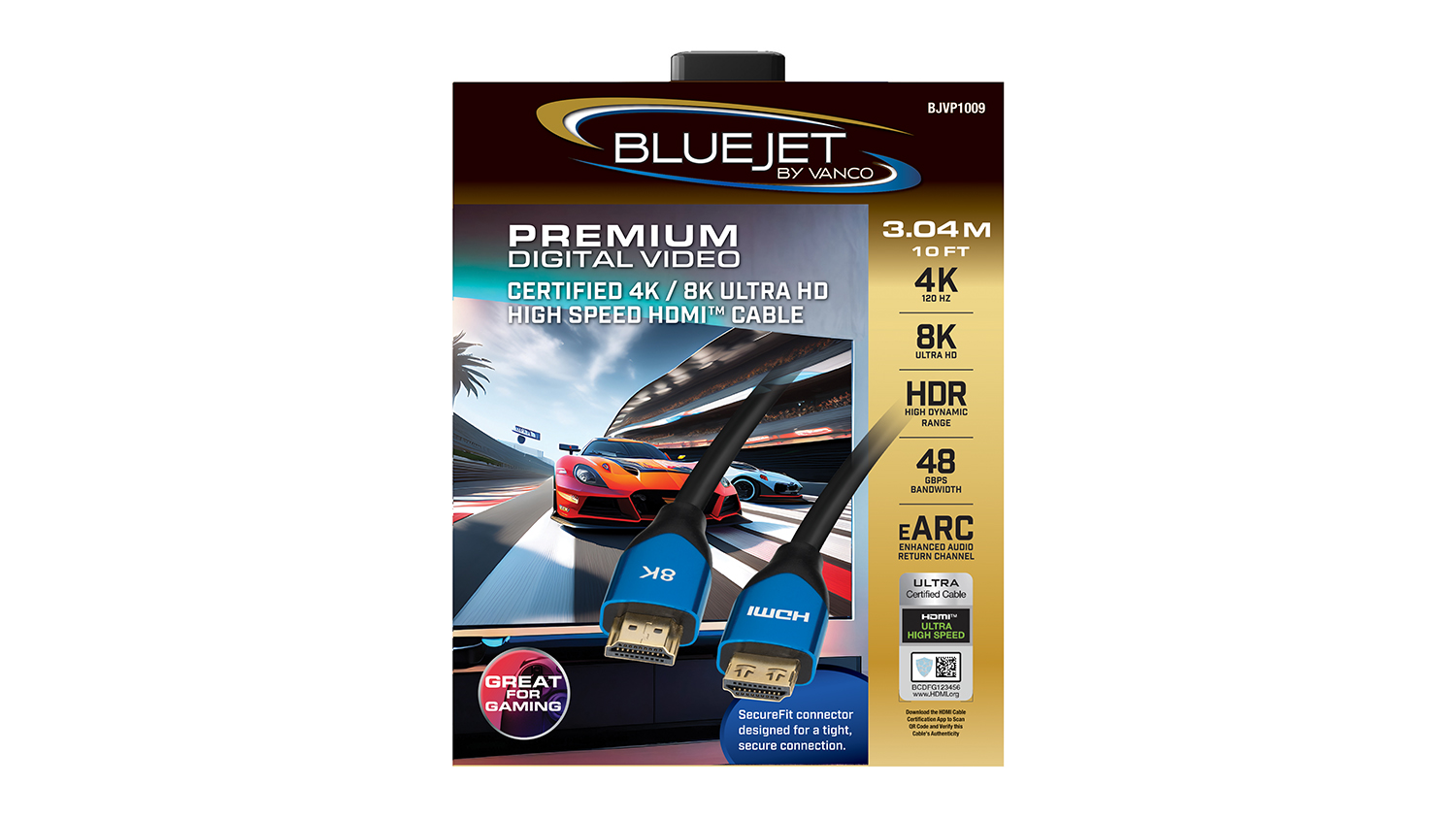 *Vanco Bluejet 8K Ultra HD 48-GBPS HDR 24K Gold Plated HDMI eARC Cable in 3.04m Length only. Compatible devices are sold separately.