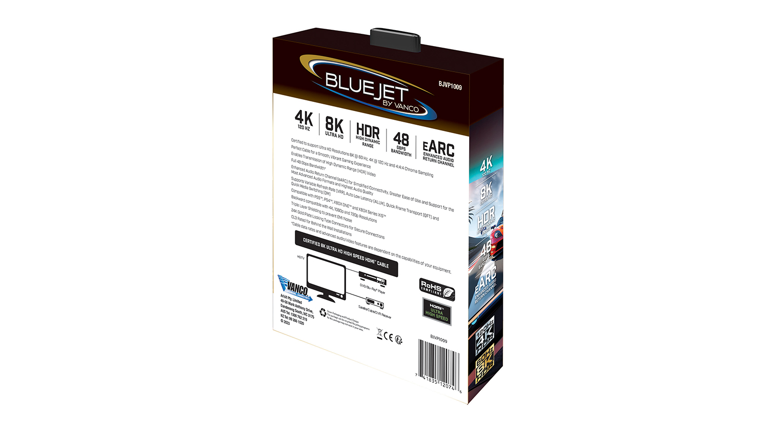 Vanco Bluejet HDMI eARC Cable - 3.04m (BJVP1009) 48 Gbps Supports HDR 4K@120Hz & 8K@60Hz