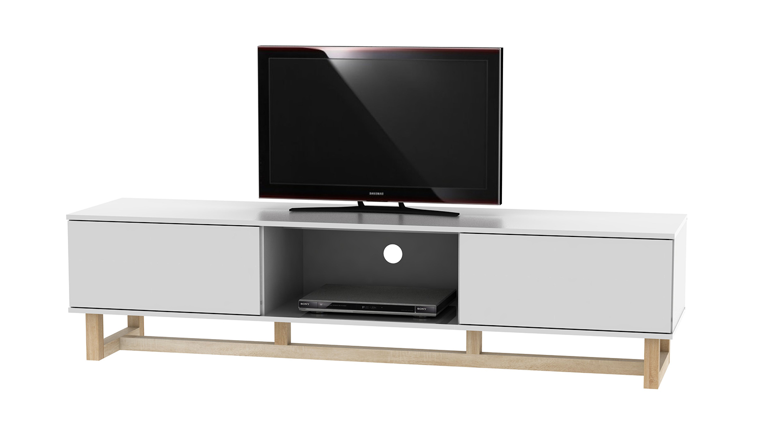 AVS 1.8m TV/AV Entertainment Centre Cabinet - White Gloss/Oak Leg (Raze Modular/RZ1800WO)
