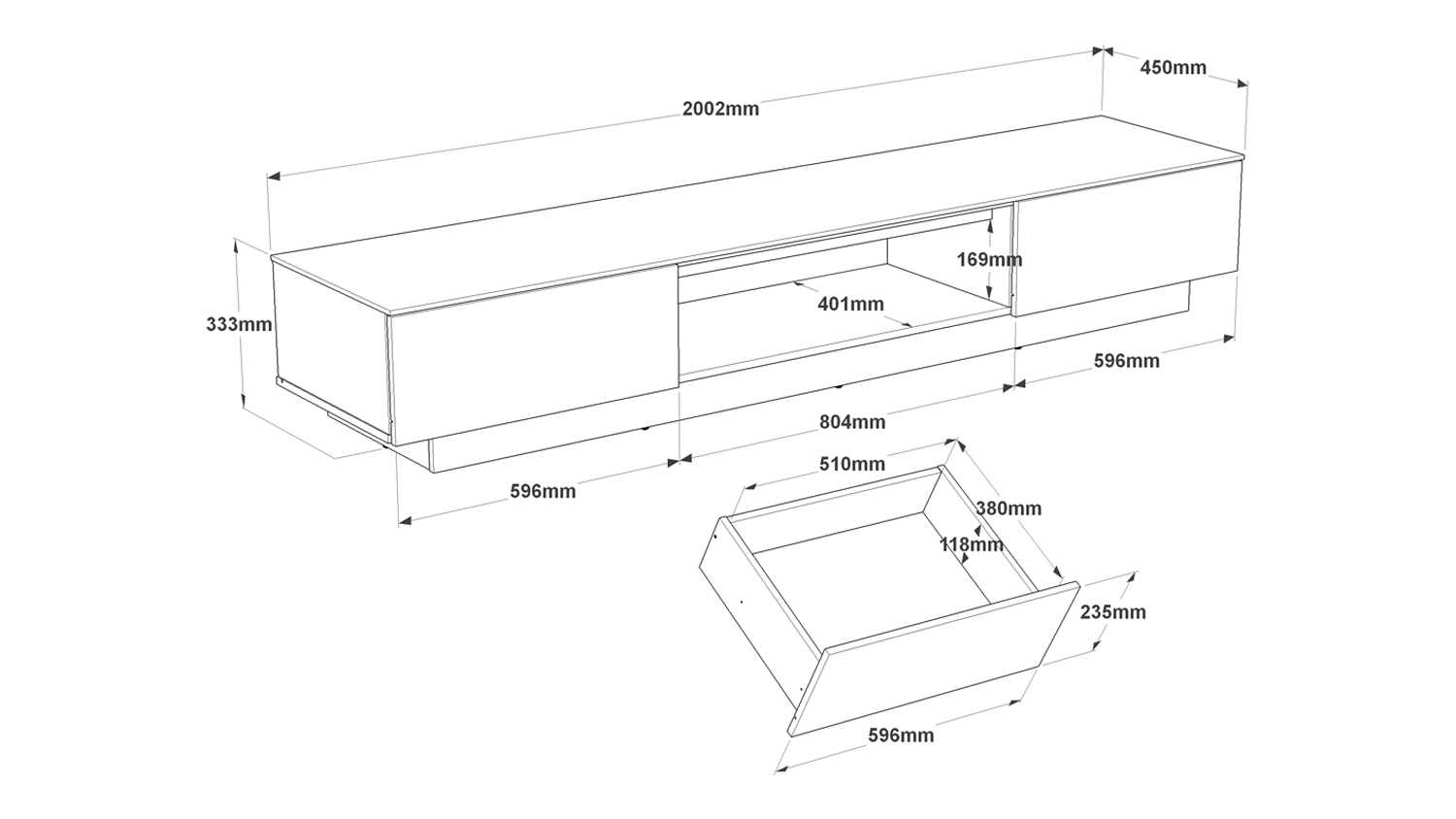 | Shelf Type | 2 x Push to Open Drawers, 1 x Large Open Cavity |