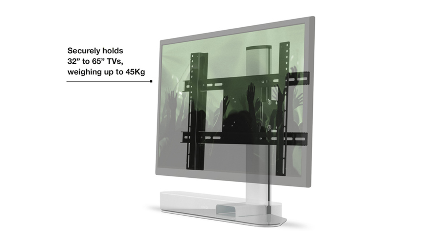 This stand allows you to seamlessly mount a TV above the Sonos Beam, keeping the screen visible. Swivel functionality allows for flexible room positioning, including corner placement. That swivel functionality - 25° left, 25° right - a wide range of available height adjustments to suit different TVs, plus a design that suits siting in both free space and in corners. A sturdy option with aluminium and high-grade steel design – expertly made in the UK - is able to take TVs measuring up to 65" and weighing up to 45kg. The Flexson Adjustable TV Stand is easy to use – all fixings and tools are included in the kit, and there’s integrated cable management to keep things neat and tidy.