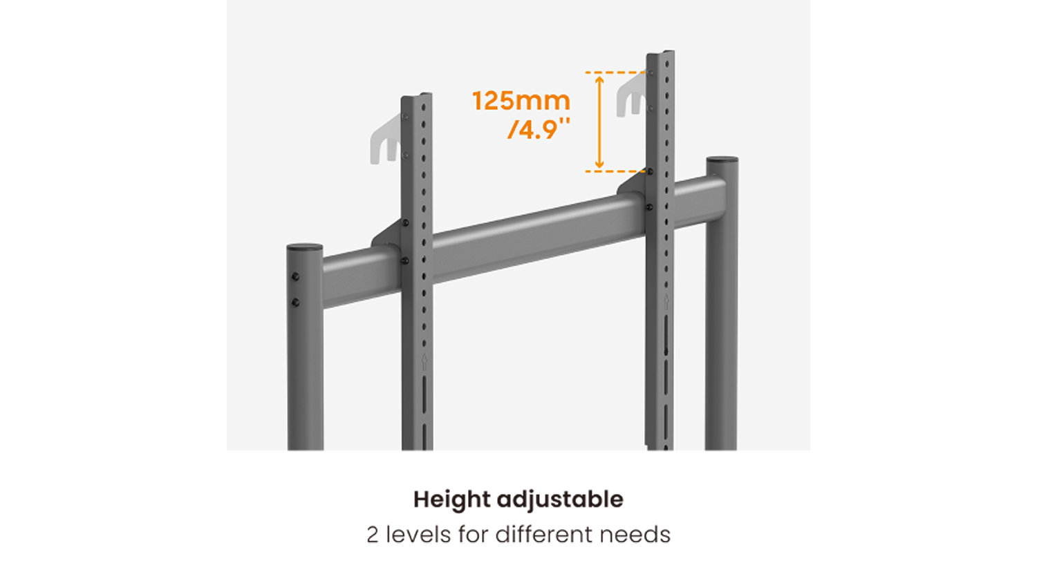 Designed to support TVs sized 50" to 86", the Konic Heavy-Duty Cart with Shelf makes a great addition to your home entertainment or office environment! This stand offers adjustable height for optimum viewing. Plus, its four large 75mm casters allow seamless mobility and 360° all-round rotation. The unit also equips a storage shelf to keep various supplies within reach.