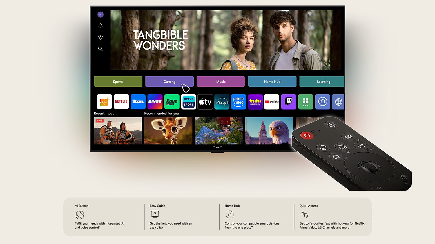 - Streamlined UI: Operating the C5 Smart TV is a breeze since it utilises an intuitive webOS 25 that offers multiple advanced features—AI Voice ID, AI Picture Wizard, AI Sound Wizard, AI Chatbot, AI Search, and Re:New Program. In addition, it comes with an AI Magic Remote, so you can easily find your content in no time.