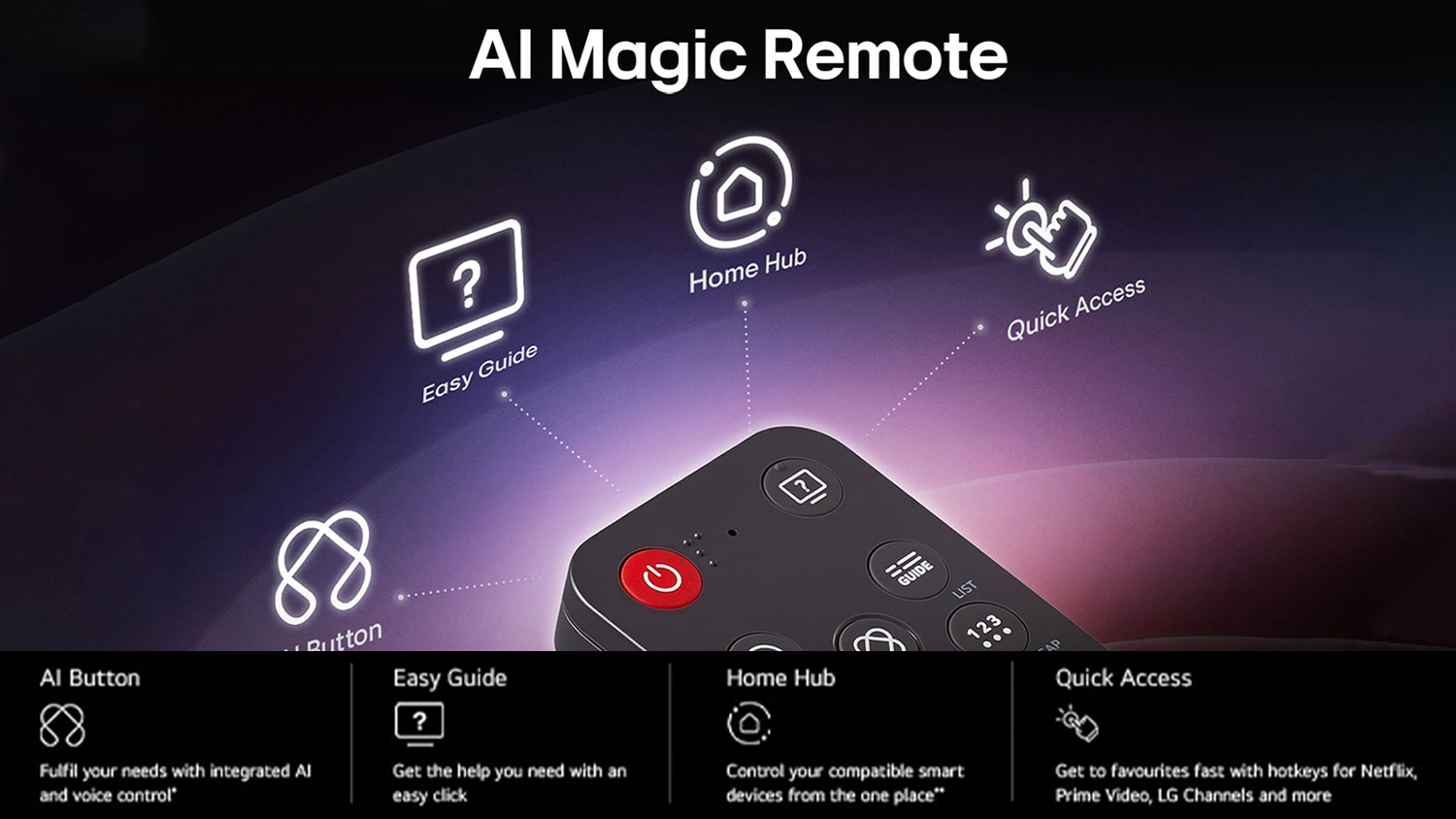 | Technology Type | AI Technology - AI Processor, AI Super Upscaling, AI Sound Pro, AI Picture Wizard, AI Clear Sound, AI Sound Wizard, AI Voice ID, AI Search, AI Chatbot, AI Magic Remote |