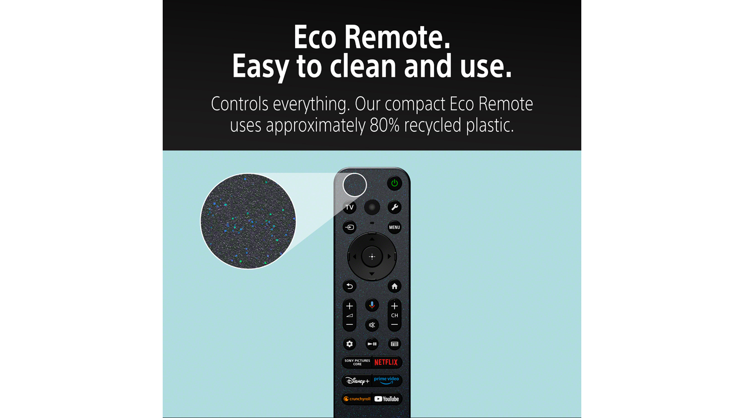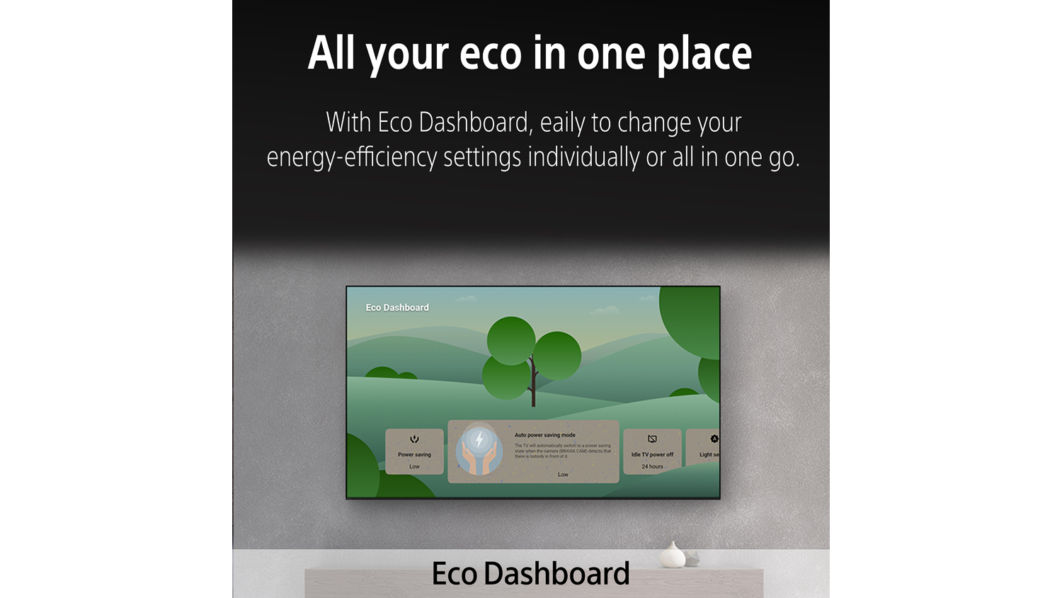 | Eco Friendly | BRAVIA helps you optimise energy consumption with the Eco Dashboard while reducing virgin plastic use by approximately 60% and cutting packaging size by 15% and total weight by 12%. |