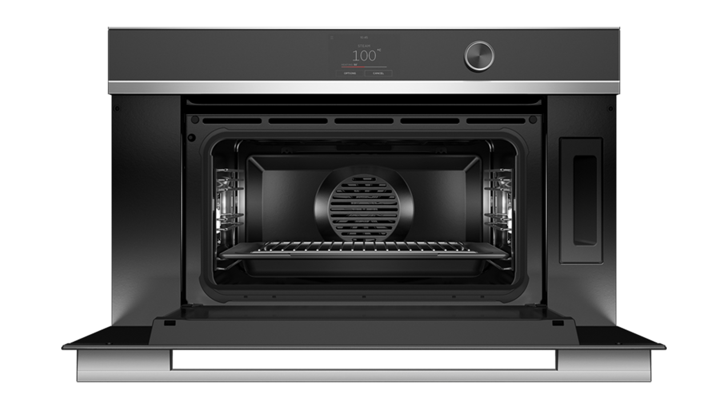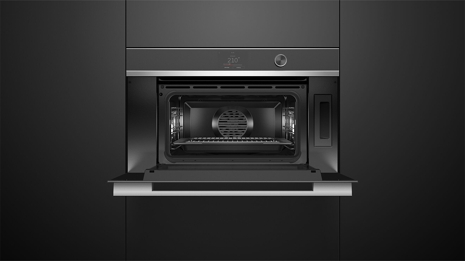 Upgrade your kitchen and discover endless cooking possibilities with the Fisher & Paykel 76cm Built-In Compact Steam Oven! Made to accommodate your different culinary needs, this innovative appliance boasts myriad functions such as Air Fry, Bake, Crisp Regenerate, Fan Forced, Grill, Roast, Slow Cook, Steam, and Warm. It also integrates Steam Clean and a Descale Cycle for breezy maintenance. Plus, this unit flaunts a sophisticated black finish with stainless steel accents so it can beautifully blend into your home.