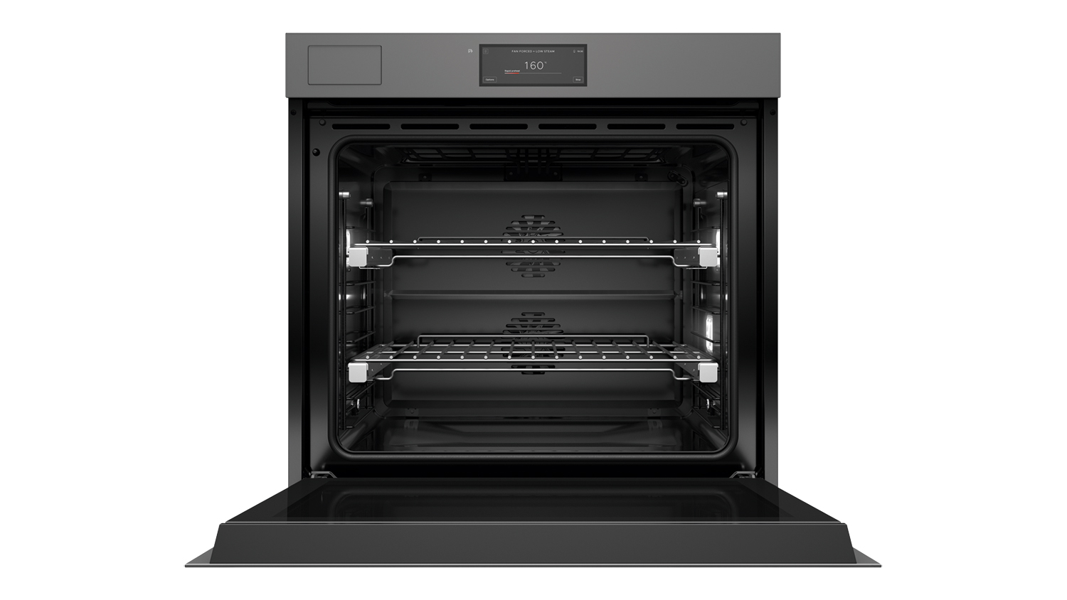 Seamless Integration: With its premium design and sleek grey glass finish, the Series 11 Built-In Steam Oven beautifully integrates into your cabinetry. It also has full extension sliding shelves for safe loading and unloading of dishes.