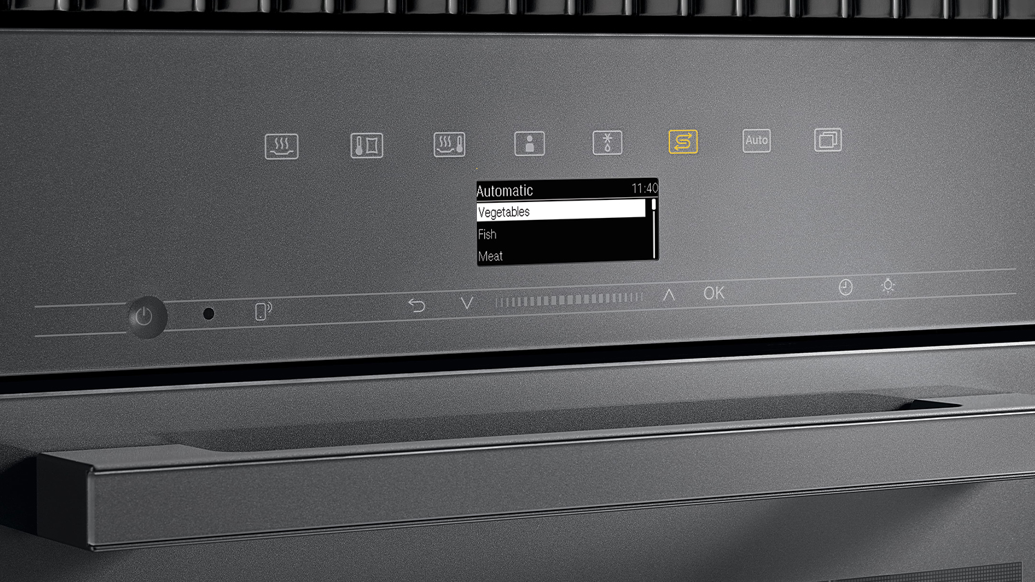 Prepare a variety of dishes and delve into diverse cuisines with Miele 5 Function DG7440 Pureline Steam Built-In Compact Oven. Perfect for modern kitchens, this versatile appliance allows simultaneous cooking on up to 3 levels, ensuring each dish retains its unique flavour. It boasts nifty features such as DirectSensor, DualSteam, Automatic Menu Cooking, LED spotlights, and a CleanGlass Door. Additionally, the oven can be effortlessly controlled via your smartphone using the Miele@home app.