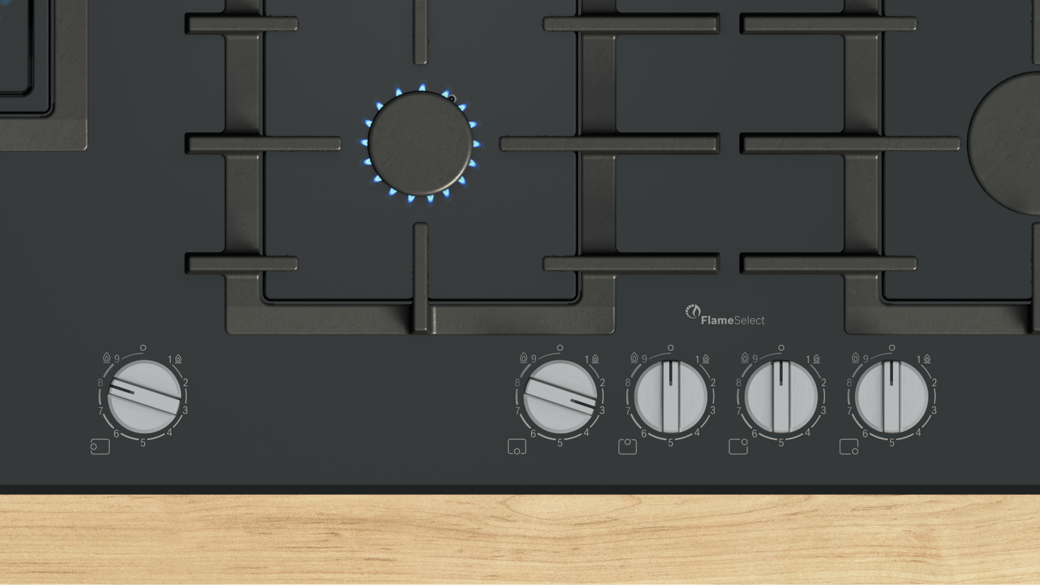 Experience culinary freedom like never before. The Bosch 90cm 5 Burner Gas Cooktop features five powerful gas burners with a specialised wok burner, allowing you to whip up various dishes in one go. It also highlights precise FlameSelect Knobs and Dual Flame Power Burners to provide unparalleled control over your cooking. To top it off, this unit’s sleek black bevelled glass construction, cast iron pan supports, and easy-to-clean surface make it a practical choice.