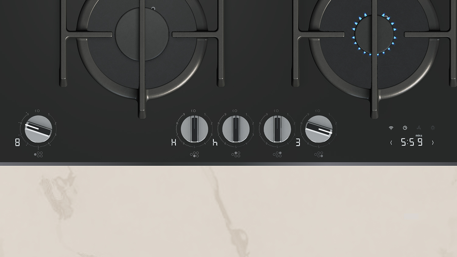 Whip up delicious meals effortlessly with the Neff 90cm 5 Burner Gas Cooktop. A great investment in your modern kitchen, this appliance features FlameSelect technology with 9 temperature levels, a touch control display, Hob-Hood Control, and cast iron pan supports to handle your different culinary needs. It also equips 5 zones, so you can create multiple delicious meals at the same time. Plus, this unit boasts a bevelled black glass surface that blends well into your countertop.