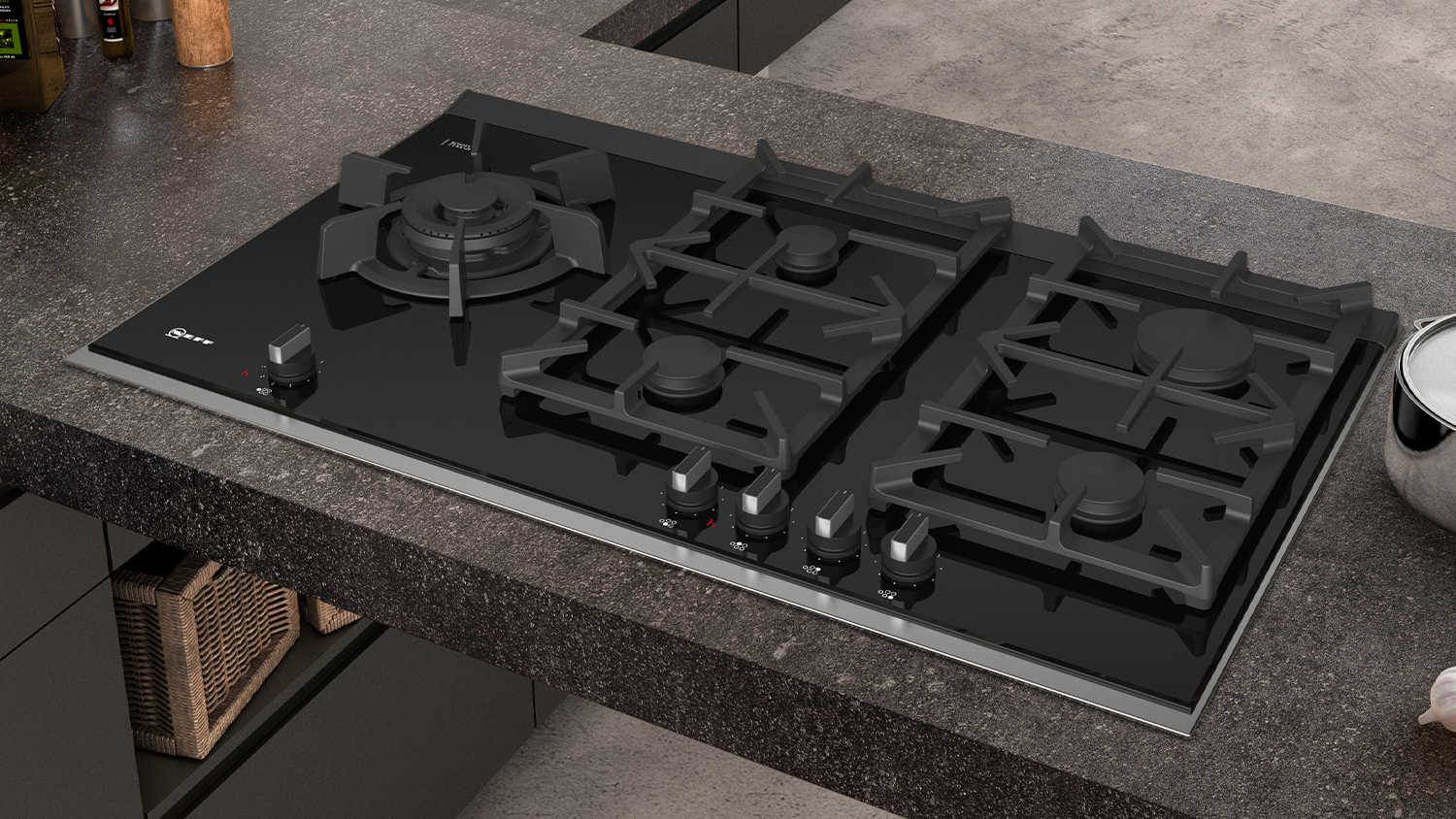 Efficiently cook your favourite dishes using the Neff 90cm 5 Burner Gas Cooktop. A great investment in your modern kitchen, this appliance offers superb power and adjustable flame to handle your different culinary needs. It also equips 5 zones, so you can create multiple delicious meals at the same time. Furthermore, it boasts a black glass finish that blends well into your countertop.