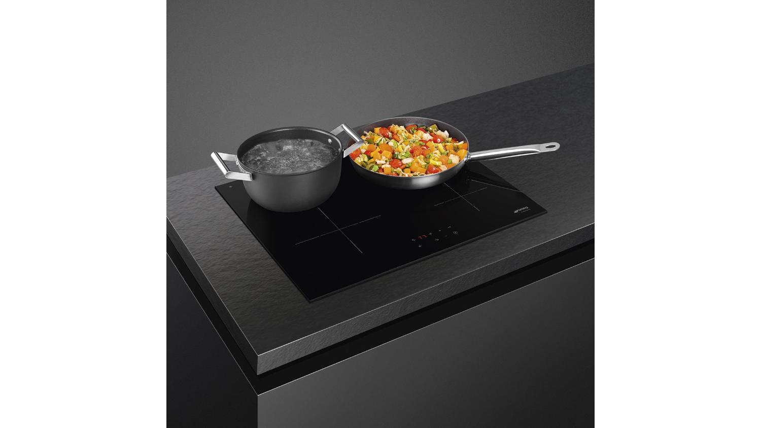 Cook smarter with the Smeg 60cm 4 Zone Induction Cooktop. Enjoy precise digital control, fast heating, and flexible cooking with nine power settings and a Boost option. Built to withstand high temperatures, the cooktop’s acid‑etched glass surface enhances any kitchen, while smart safety features and seamless installation ensure worry‑free everyday use.