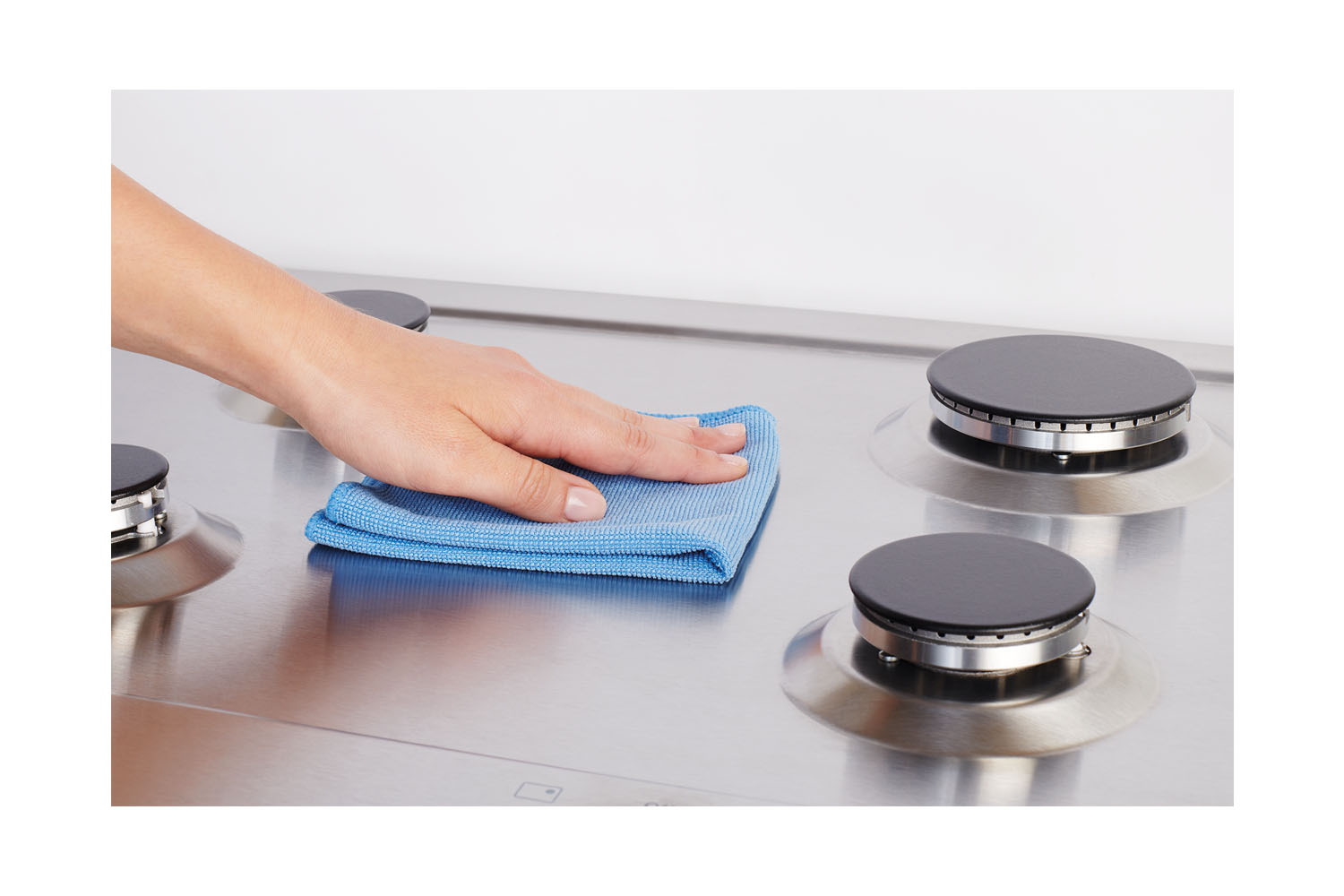 Cleaning is a breeze just lift off the three grates and wipe clean. The large knobs and the instant ignition make it a pleasure to use. I replaced my expensive Italian stove with Westinghouse appliances and couldn't be happier.