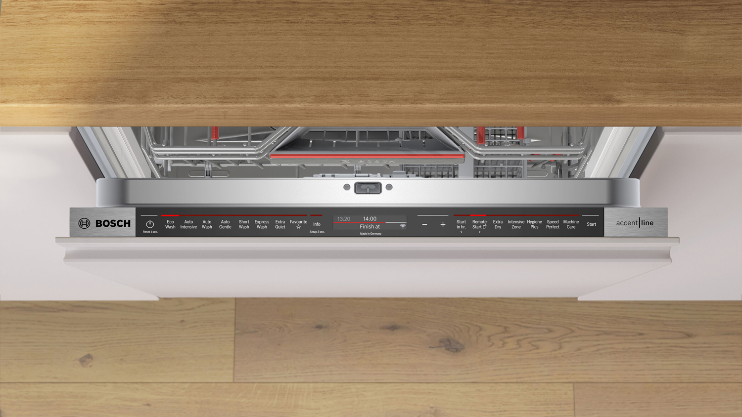 | Wash Programs | Eco Wash, Auto Intensive, Auto Wash, Auto Gentle, Short wash, Express wash, ExtraQuiet, Favourite: (Pre- Rinse is set as default) |