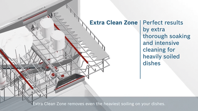 Reliable Dish Cleaning: Easily clean up your dirty, greasy dishes using the Bosch 15 Place Setting Fully Integrated Dishwasher. Delivering heavy-duty washing performance, this unit employs an Extra Clean Zone that blasts away dried-on food with powerful water jets. It also offers a Silence Plus feature for quiet operations at just 42 dB.