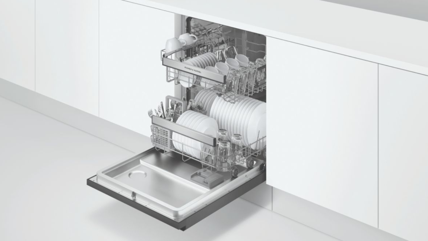 Say goodbye to tedious dinnerware cleaning with the Fisher & Paykel 15 Place Setting Dishwasher. This appliance offers 7 wash programs, including 60-Min, Auto, Eco, and Rinse, plus options like Half Load, Sanitise, and Dry+ for breezy post-meal cleanups. It also equips the ThermoDry system and a self-opening door to ensure your dishes are cupboard-ready. Plus, with a height-adjustable top basket and foldable racks, you can easily fit all your kitchenware.