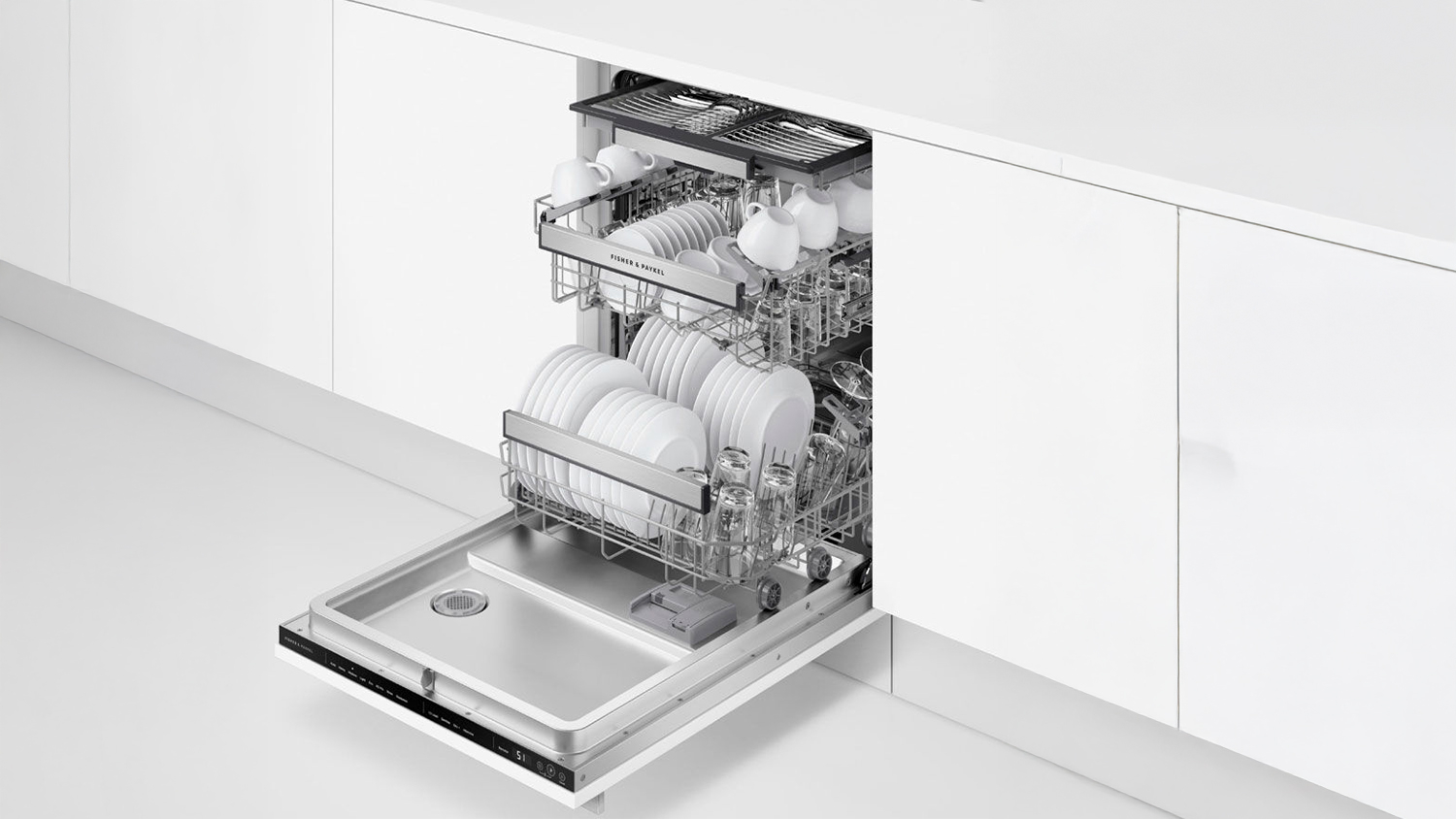 Essential Kitchen Appliance: Effortlessly clean your dishes with the Fisher & Paykel 15 Place Setting Tall Fully Integrated Dishwasher. Featuring multiple wash programs, a three-stage filtration system, and the Auto Door Open Dry, this unit is a smart addition to any modern kitchen for exceptionally clean results.