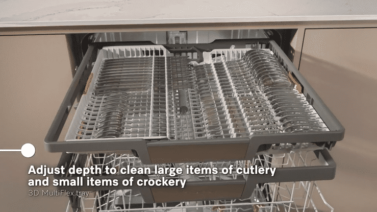 | Cutlery Rack/Tray Feature | 3D MultiFlex Tray - Full-Width Cutlery & Utensil Tray at the Top of the Dishwasher |